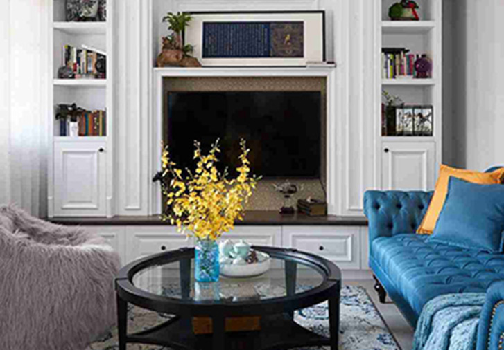 金黄色通常代表阳光的热情,绽放的激情,而蓝色是宇宙最本质的颜色,是天空是大海,是无限与深邃,是自由与生命,承载了无尽的想象力,优雅纯澈却又风情万种。当理性、优雅的蓝色与积极、热情的黄色相遇,则形成强烈的色彩碰撞,所有的一切从整体上营造出一种典雅之气,在任何一个角落,都能体会到主人悠然自得的生活和阳光般明媚的心情。