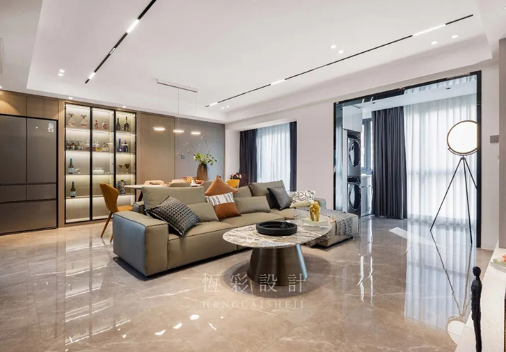 客、餐厅一体式的空间格局,吊顶做了延伸,更觉畅通。