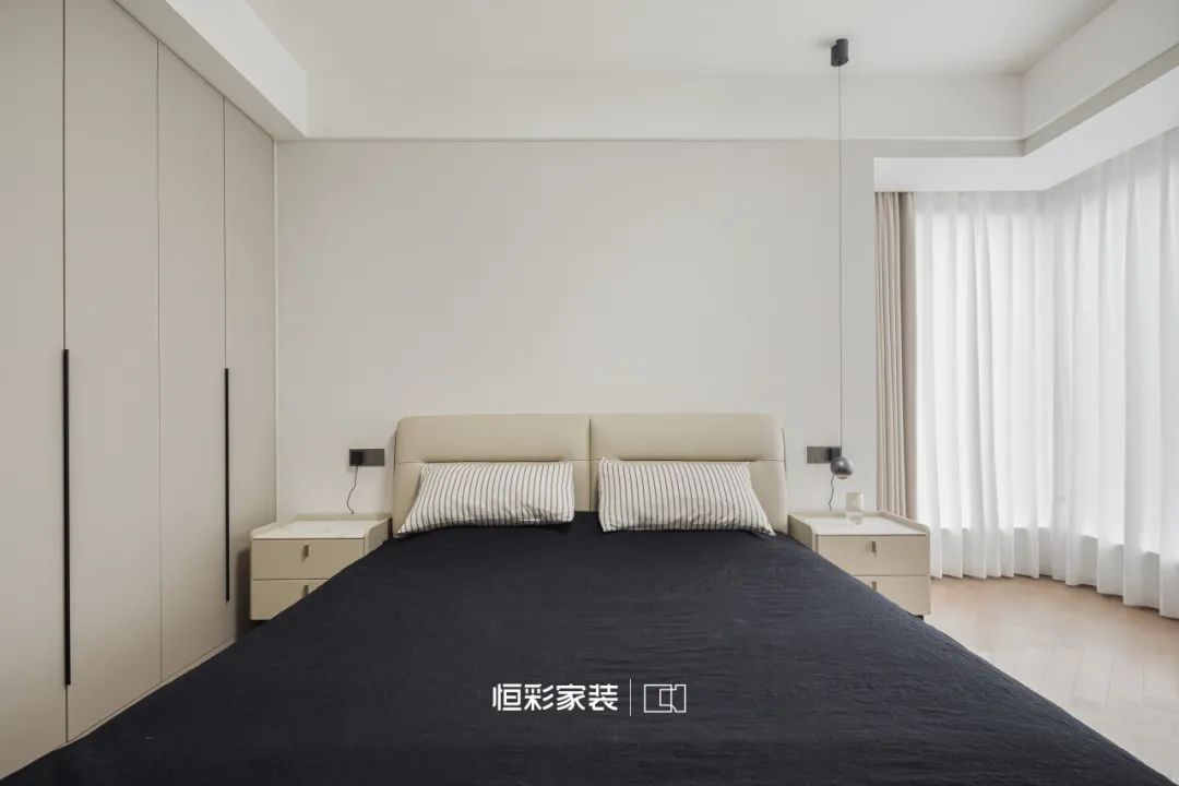 淡墨轻烟的晨光里,灰与白像是岁月静好时的一抹淡然,润物无声,心绪柔和成诗。主卧以阳台为画框,揽入一方宁静,淡烟疏雨只余最纯粹的致远。