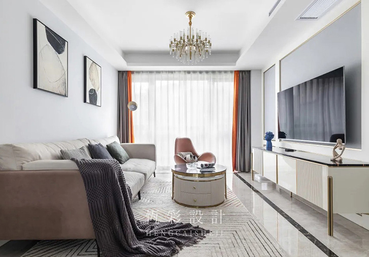 全铜法式水晶吊灯作为主灯,营造了高级的轻奢调调。