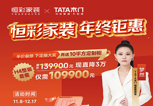 恒彩家装(年终x钜惠)半价装新家·下定抽大奖再送10㎡定制柜活动时间11.8-12.17恒彩家装年终钜惠来袭!击破底价,超多装修福利!多重优惠尽享折上折!赶紧加入本次钜惠狂欢!趁好价装新家下定就是现在~