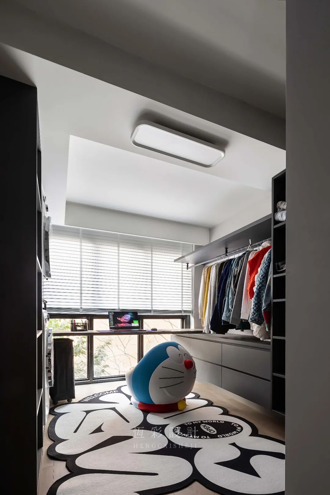 因为目前独居,更多的还是考虑自己的需求。于是将次卧改造成一个开放式的衣帽间,顺便收纳洗衣机、烘干机,直接实现更换、洗衣、储物的系列连贯动作。