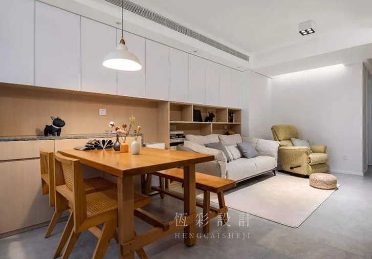 客餐厅以整面式的柜体做了空间的延续。