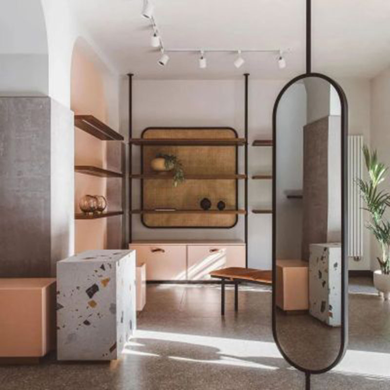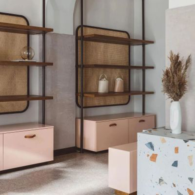 这间公寓的设计采用了时尚灵动的马卡龙色。低饱和度的象牙粉搭配磨砂质感显得清新而具有魅力。橡木置物架恰到好处的综合了稚气。