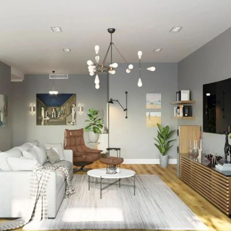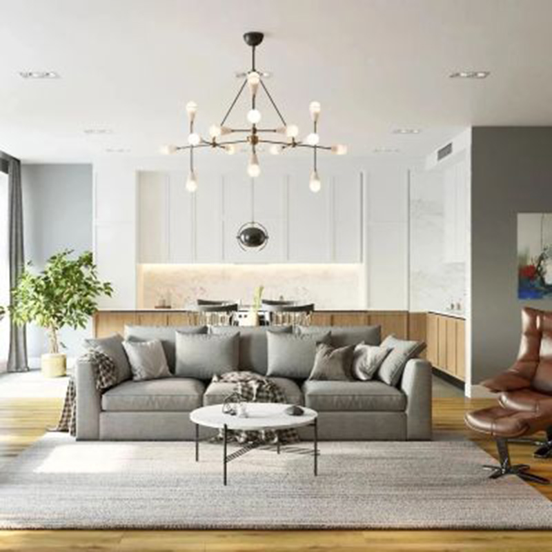 设计感吊灯最能简洁明了的提升空间格调,棕色的皮质沙发也成了客厅的点睛之笔,打破平静的同时又赋予了空间趣味性与品质感。