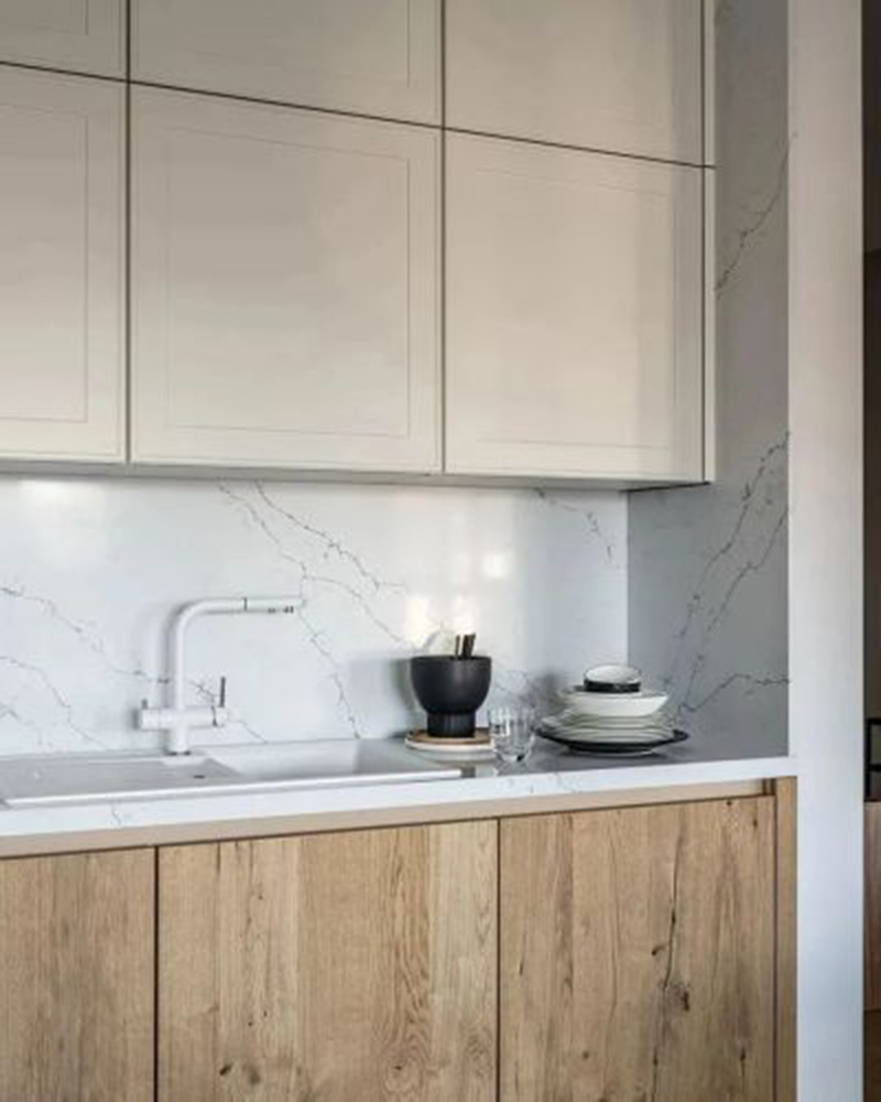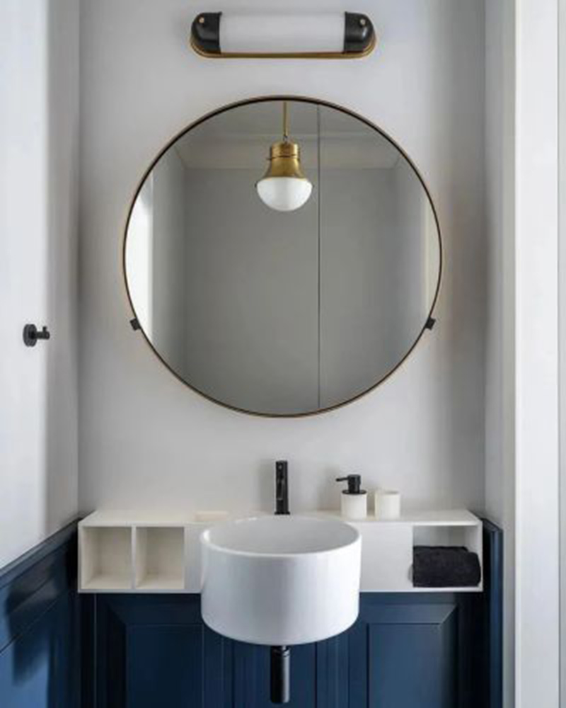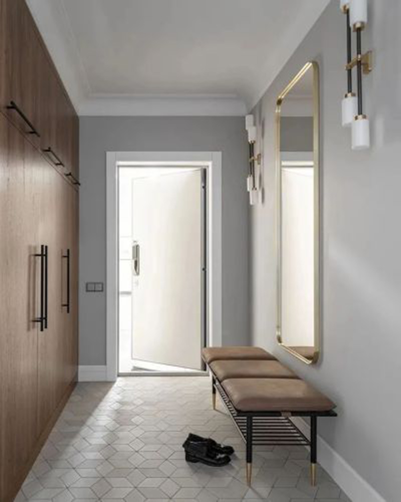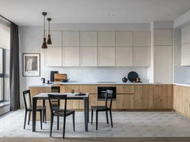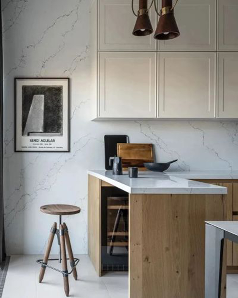 每个房间都有黄铜装饰的细节,厨房和橱柜正面的木材纹理都互相呼应。