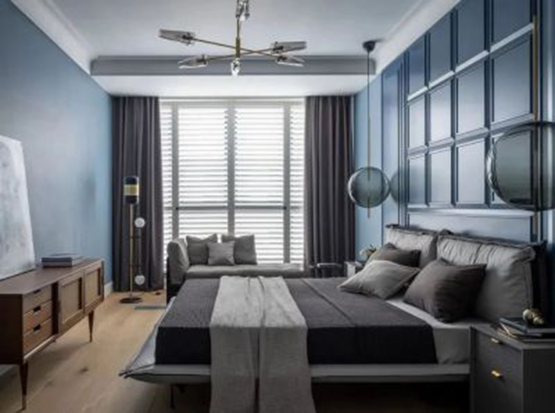 主卧营造温馨舒适的休憩空间。装饰靠的是家具和艺术的精心组合,增加梦幻感的同时也强调了理性色彩。