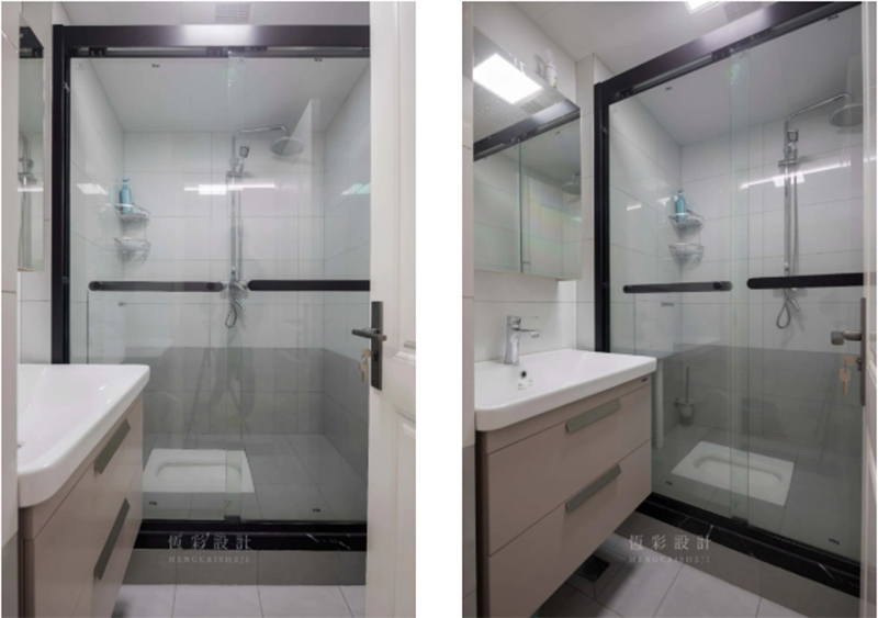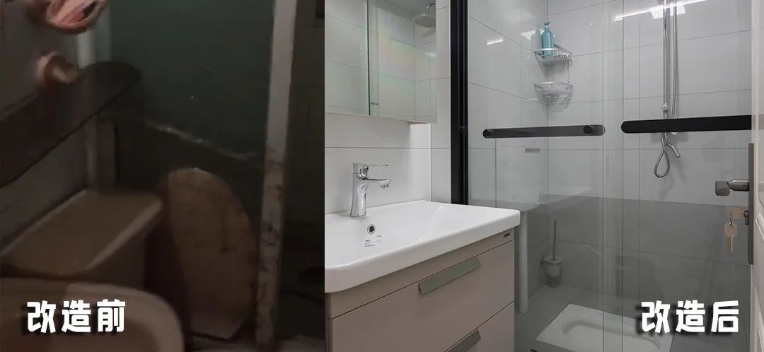 暗卫,台盆柜太小物品摆放受限,在洗漱区与淋浴区塞下马桶,空间拥挤感不言而喻;
