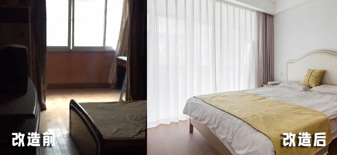 原本的阳台与卧室虽未作隔断,但因为深木色的装修,整体依旧显得昏暗。
