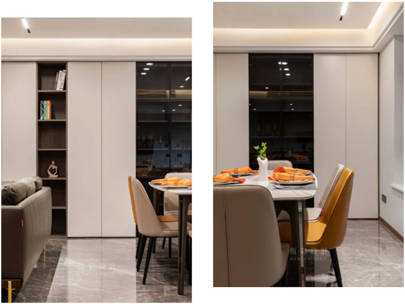 深色玻璃用作餐边柜之用,增加通透的美感。