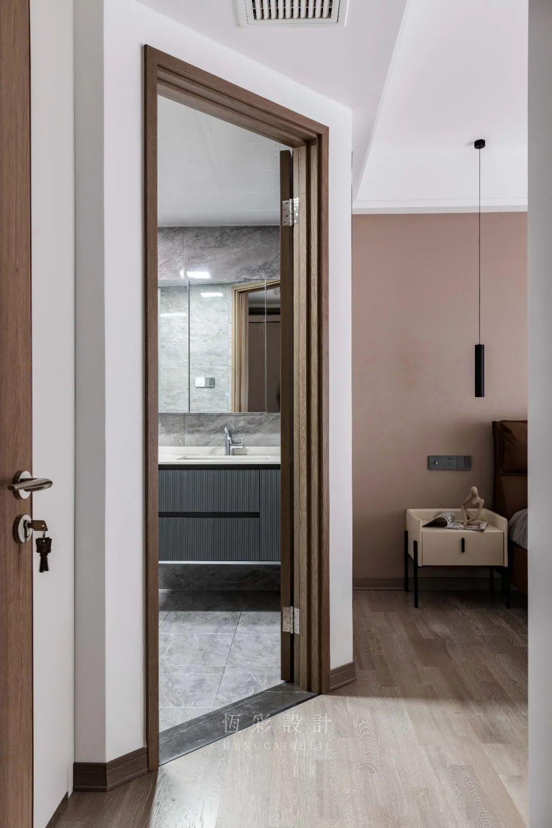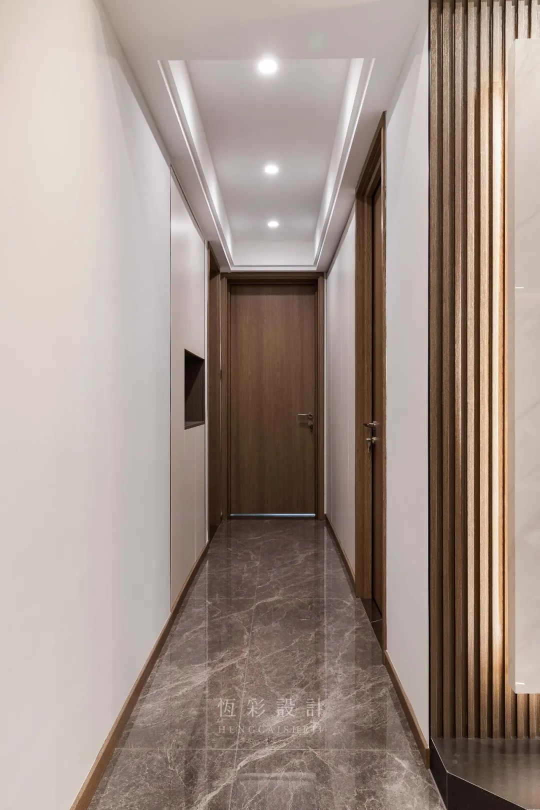 方形吊顶配合筒灯布局,提升光感缓解小空间的视觉压抑,小小的过道仪式感满满。