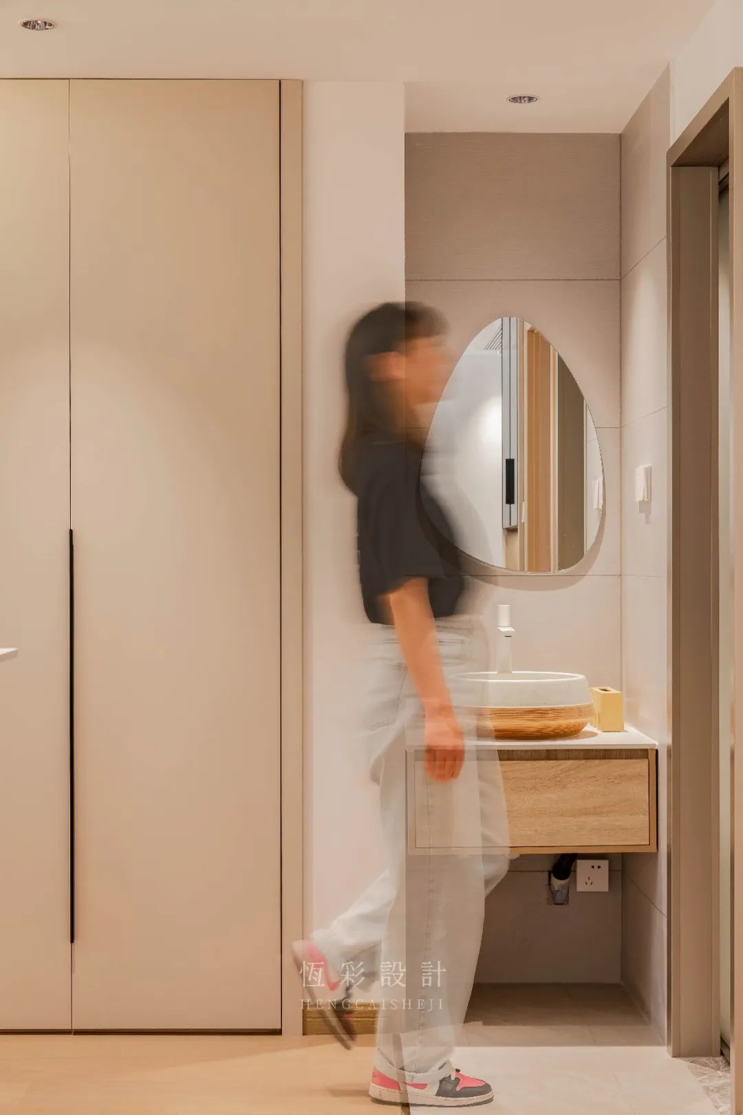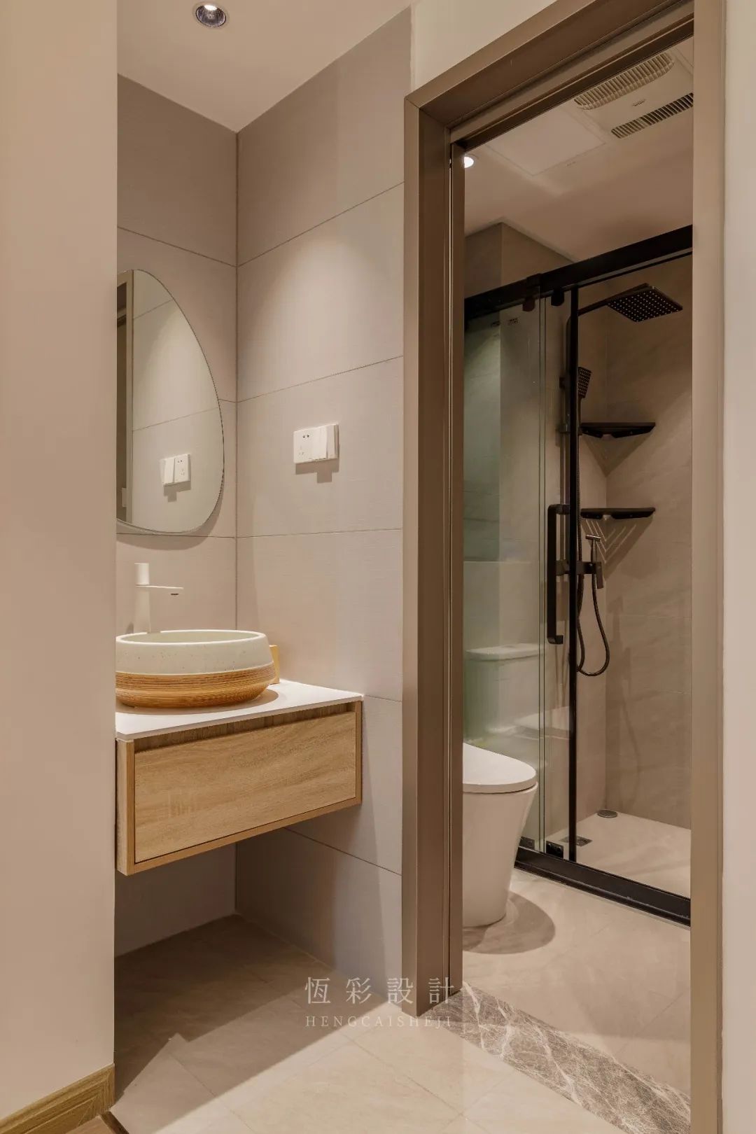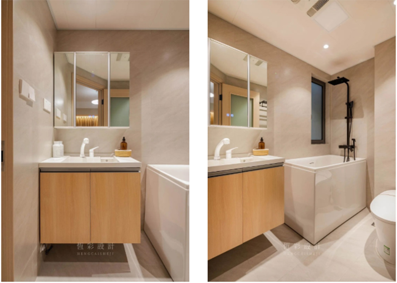 主、客卫色彩调性不变,区别于卫浴空间惯常的理性用色,而是将私人空间打造得更为温暖、舒适。