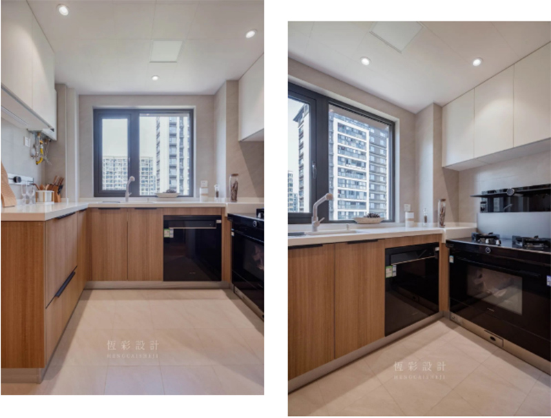 厨房本身面积不大,为提高空间利用率,做了U字型的台面设计。