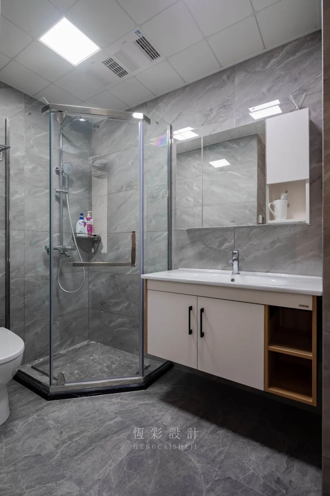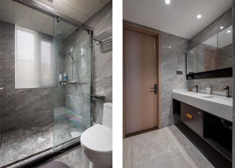 卫生间多以灰调来彰显简洁大气感,让私人空间更加利落大方。