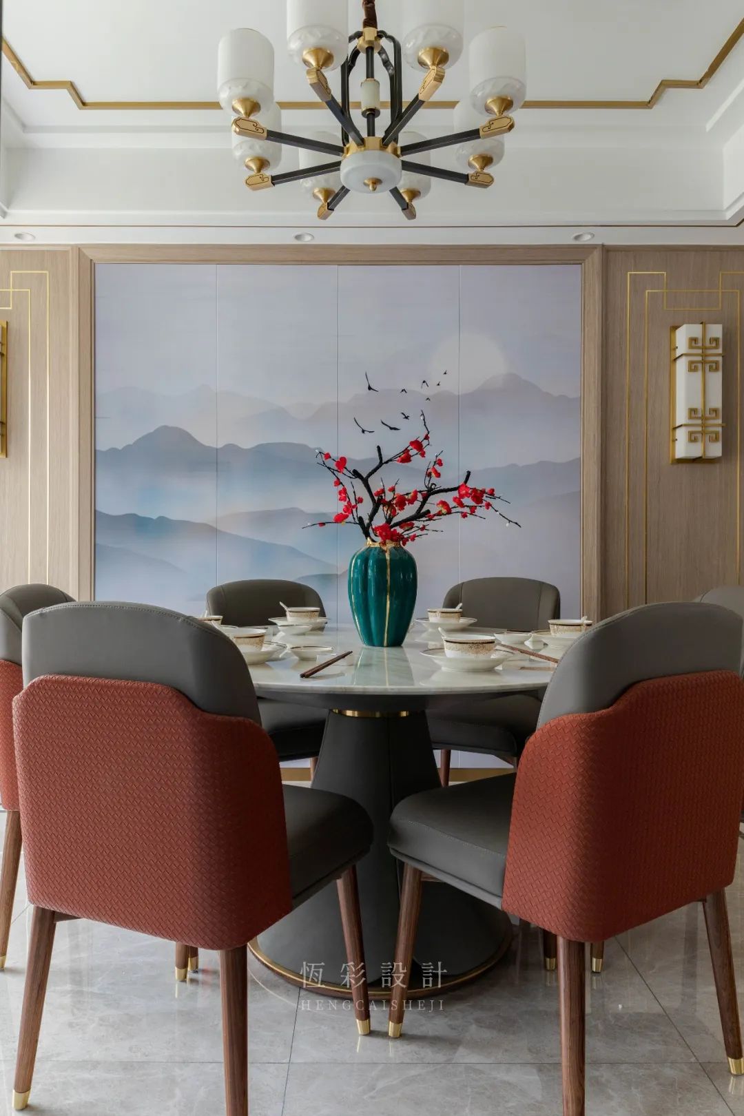 本案是非常典型的三胎家庭,屋主夫妻俩喜欢中式的东西,所以风格定位为轻奢中式,包含中式元素的同时也更显得年轻、时尚。