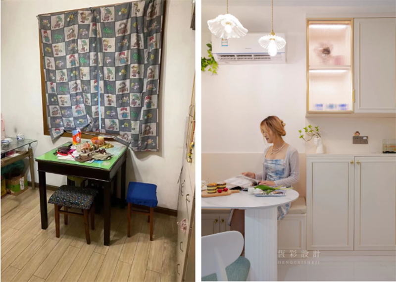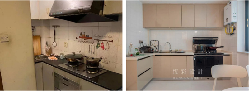 厨房是由原先的次卧改造而成,面积是原先的3倍,暗淡逼仄的小厨房,改造后秒变开放式敞亮大厨房!