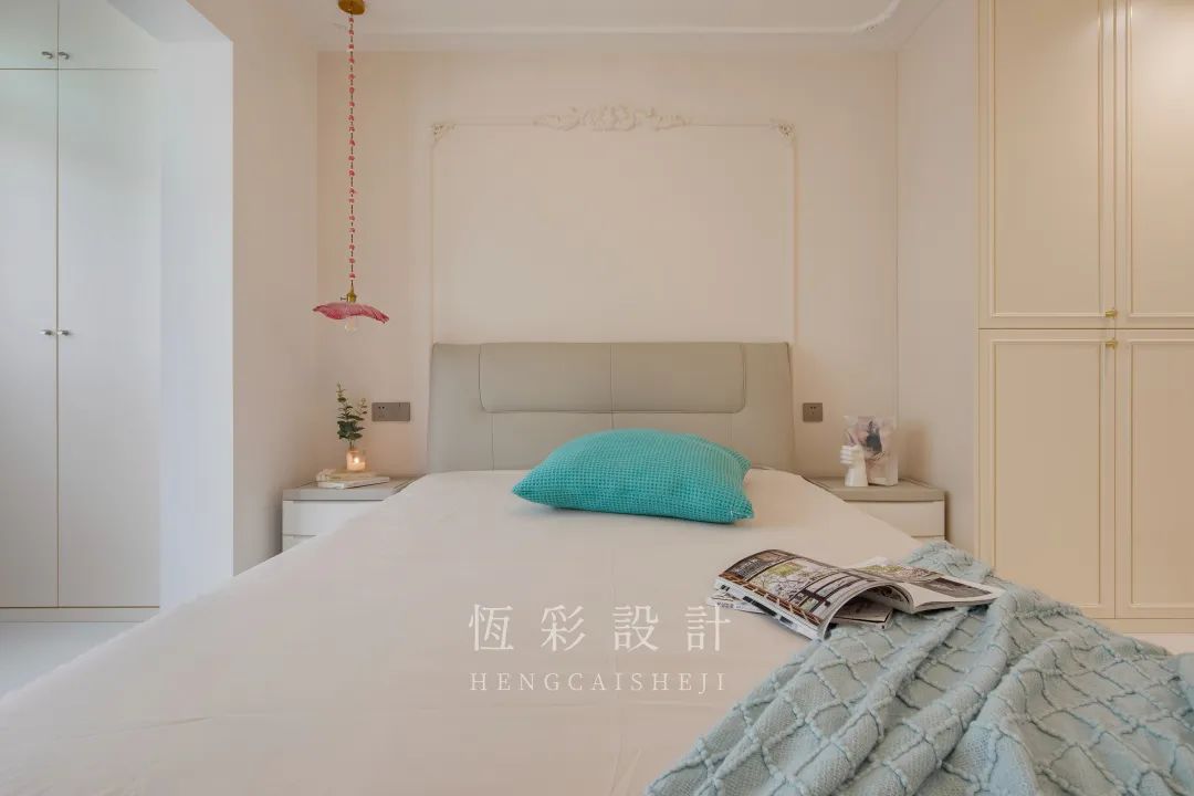 主卧定制了L型的大衣柜,轻松get超大储物空间。全屋储物柜是公司合作的索菲亚定制,质感尤佳。