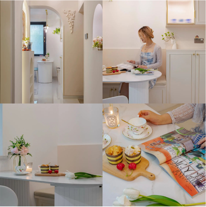 中国菜的烹饪习惯多重油重辣,开放式厨房更要重视油烟问题,屋主选择了与公司合作的火星人集成灶,轻松解决开放式厨房的油烟问题,还省出宝贵的吊柜空间。
