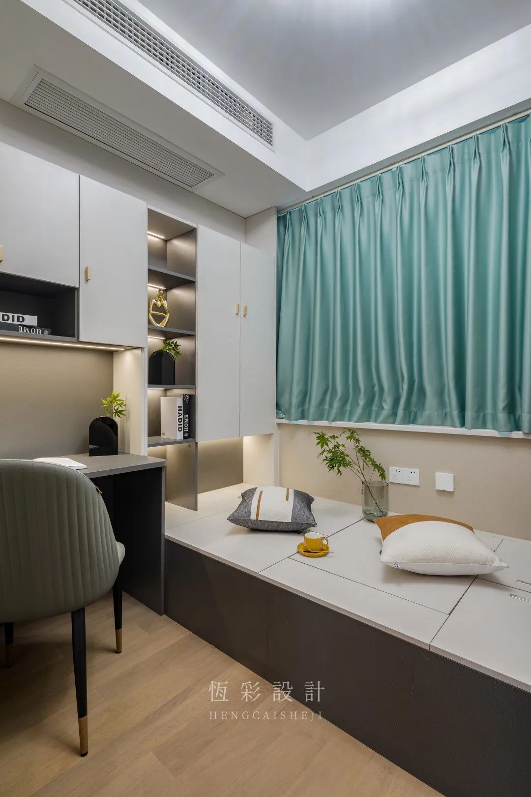 这里目前是屋主的工作区,偶尔使用,以后就是儿子的学习区啦。亲友来访也能作为卧室使用。