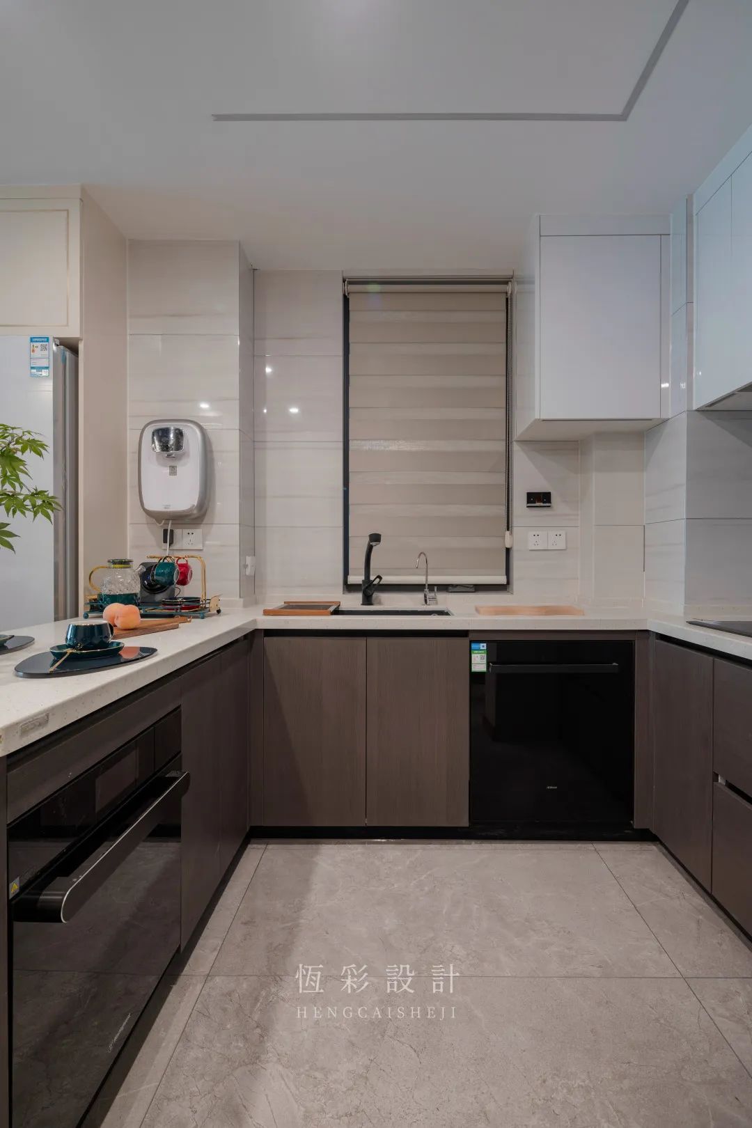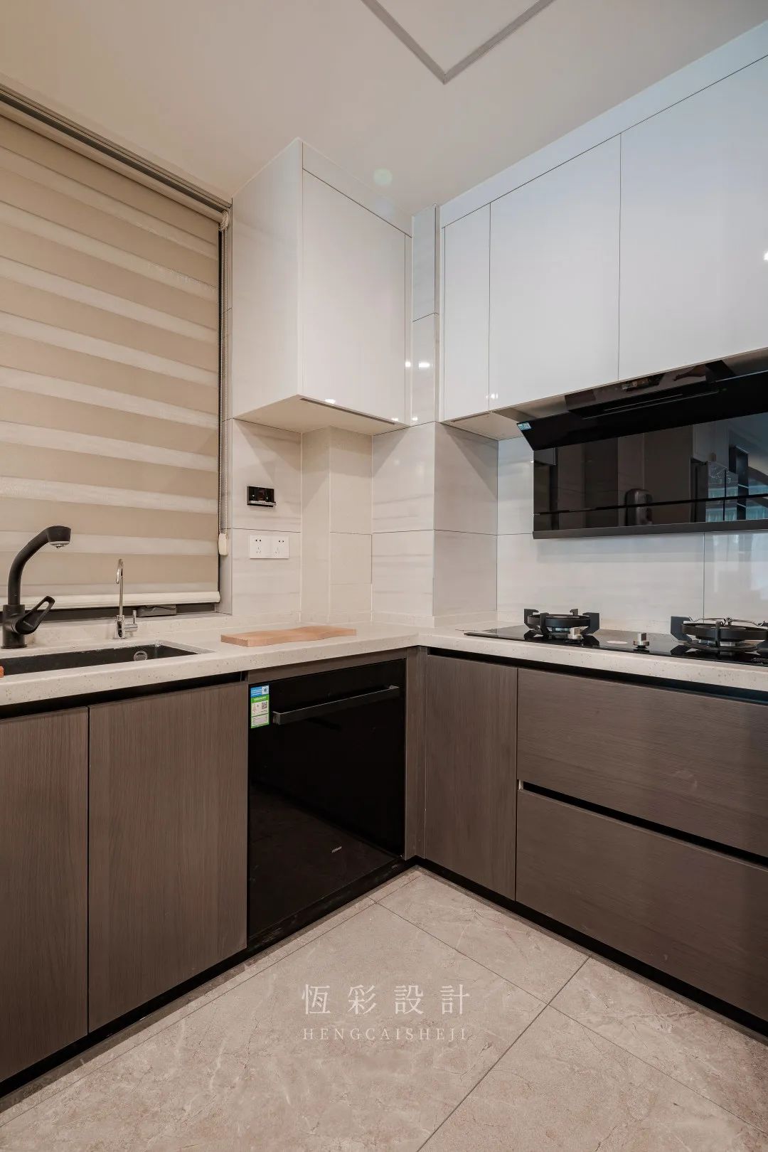 一天的工作和学习结束,家人一起吃顿丰盛的晚餐让人幸福感爆棚。屋主时常动手做饭,常做饭的人都知道厨房台面的重要性。改造后由L型厨房升级U型,多出一整排操作台面,做饭时顺手多了!