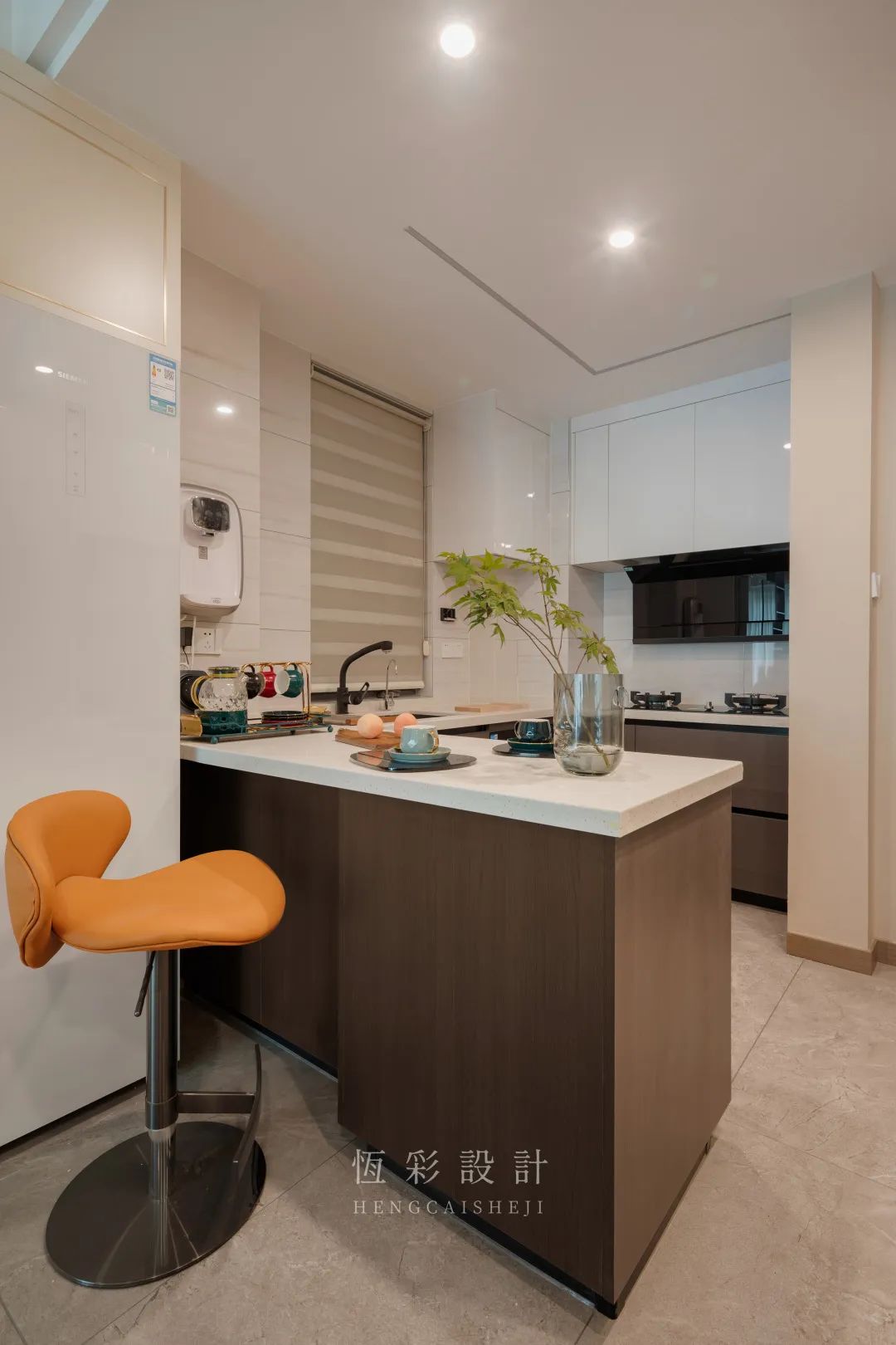 多出的台面也能作吧台使用。闲暇时喝杯咖啡或花茶都是不错的选择。
