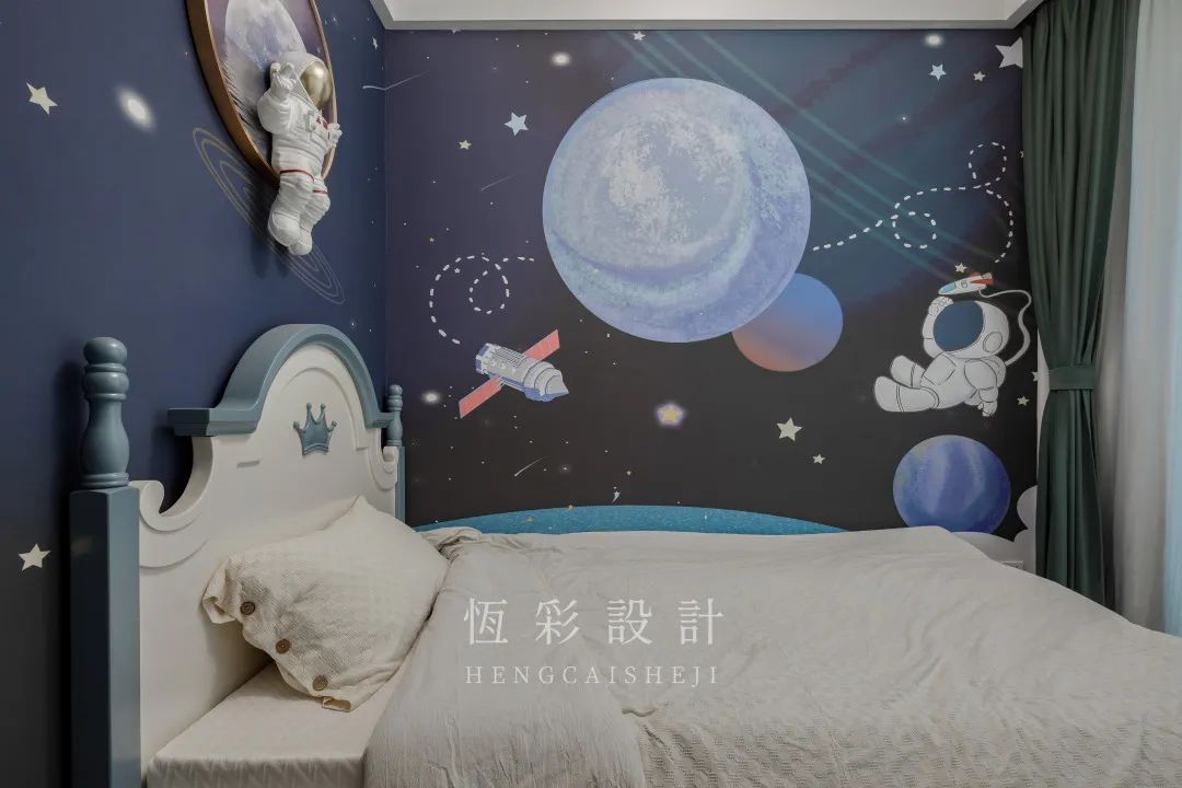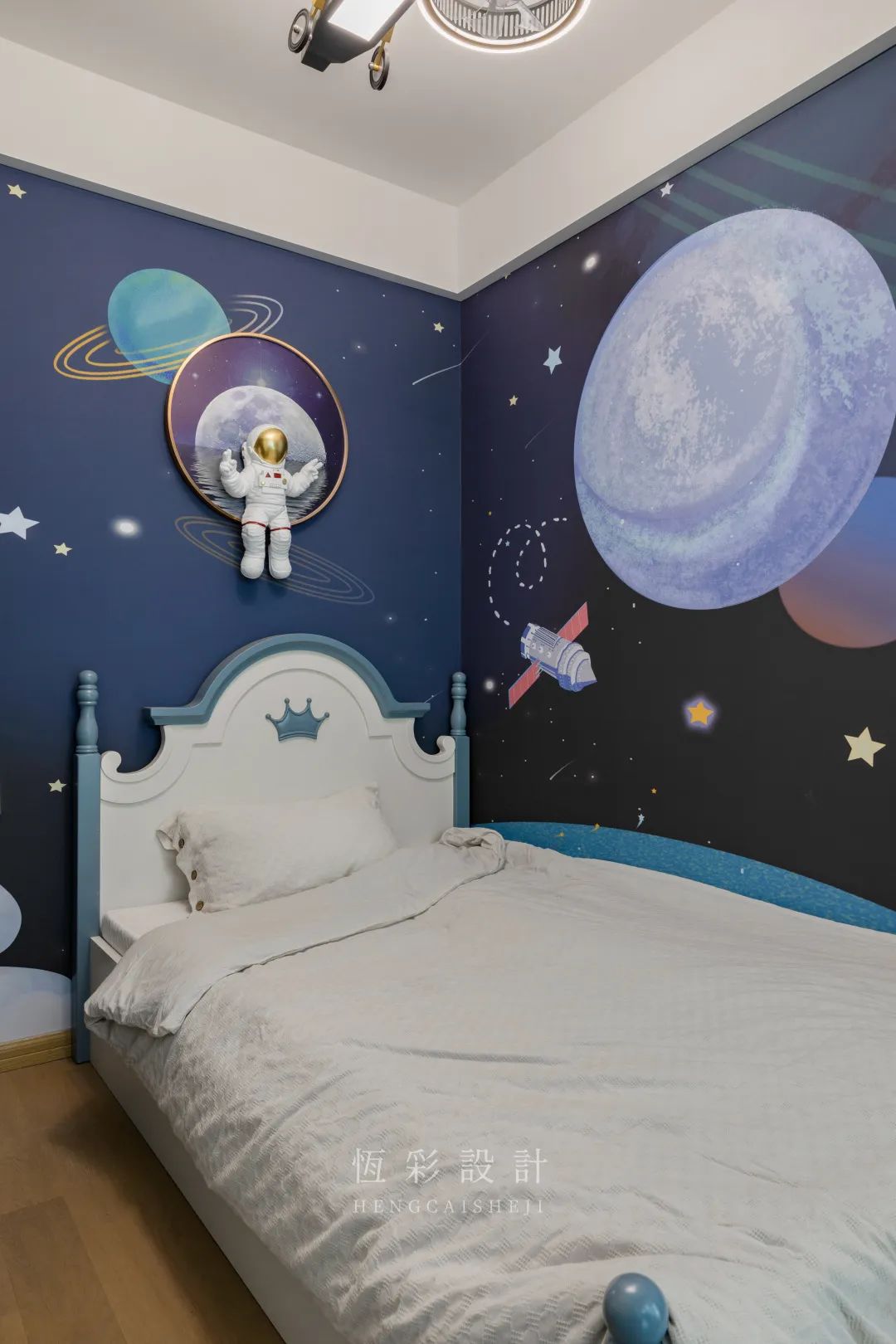 来到儿童房,已经感受到了小主人的可爱,满屋的航天元素很好得保护了孩童时期懵懂的小梦想。