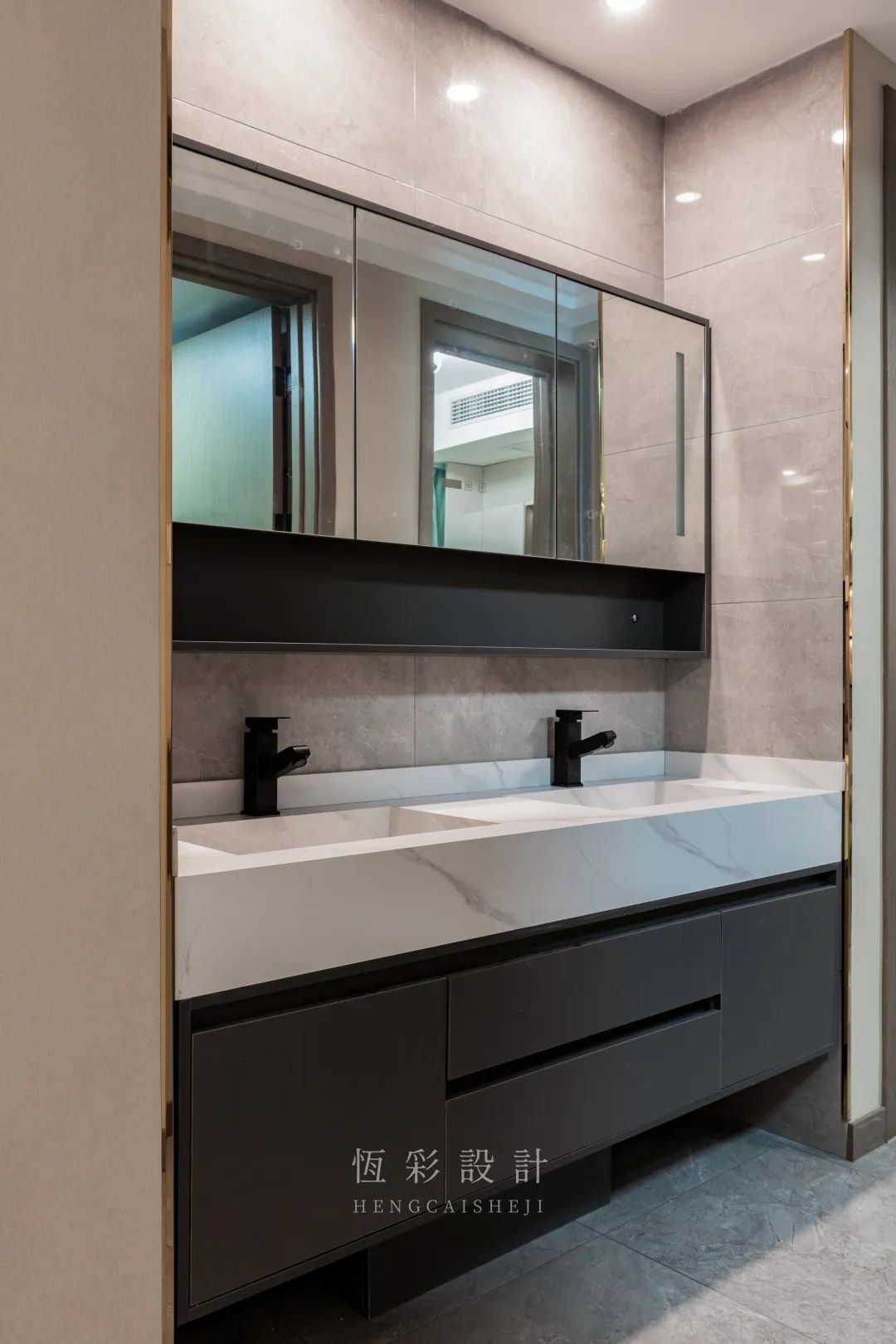 疫情期间经常洗手,改造后客卫不仅实现干湿分离,还做了双台盆设计,这在小户型中很少见哦。