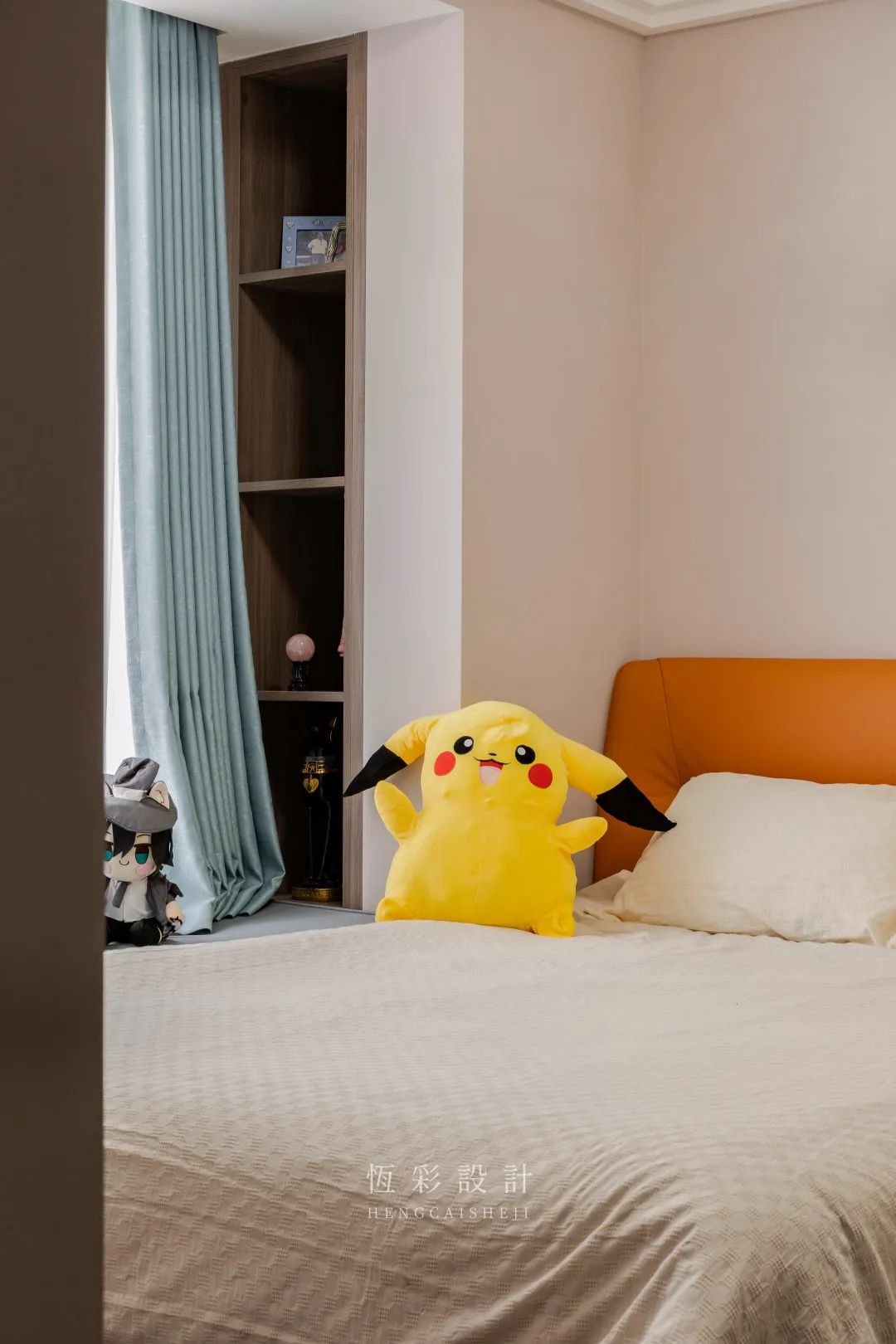 女儿房另有一个小窗,安排与主窗帘同色的mini窗帘俏皮可爱。