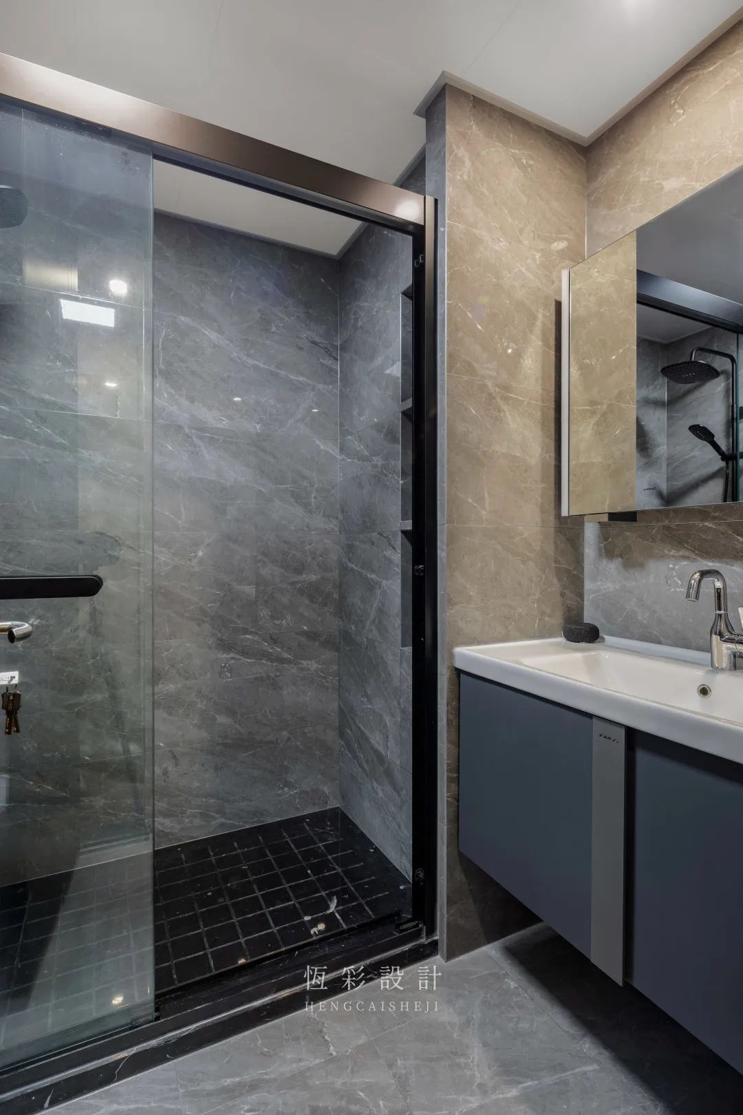 主卫设计满足日常基本需求,淋浴房大理石拉槽则是提升生活幸福感的秘密武器哦。