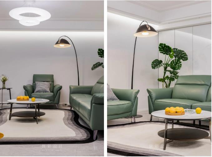 前面说到本案采光欠佳,改善采光条件同样是客厅的难点。主灯+线条灯+筒灯+落地灯的配置相当豪华,效果也很赞!