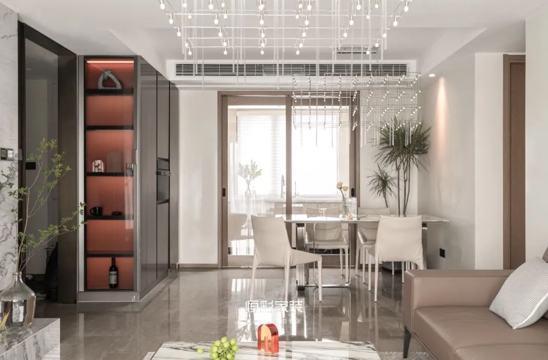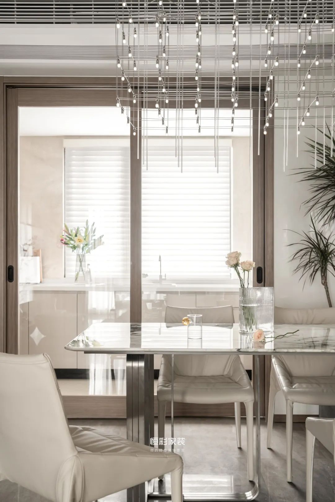 餐厅主灯选择与客厅同款的网红满天星灯,银色的不锈钢,略轻奢又不张扬。