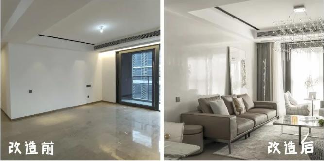 本案常住一家三口,加上一位老人带小孩,四室两厅的格局刚好满足需求,因此在格局上没有做改动。风格上,遵循屋主喜好,现代意式中略带点轻奢的味道,从立面改造和软装着手,将由万科交付的简易精装房摇身一变成了精装房中的“爱马仕”。
