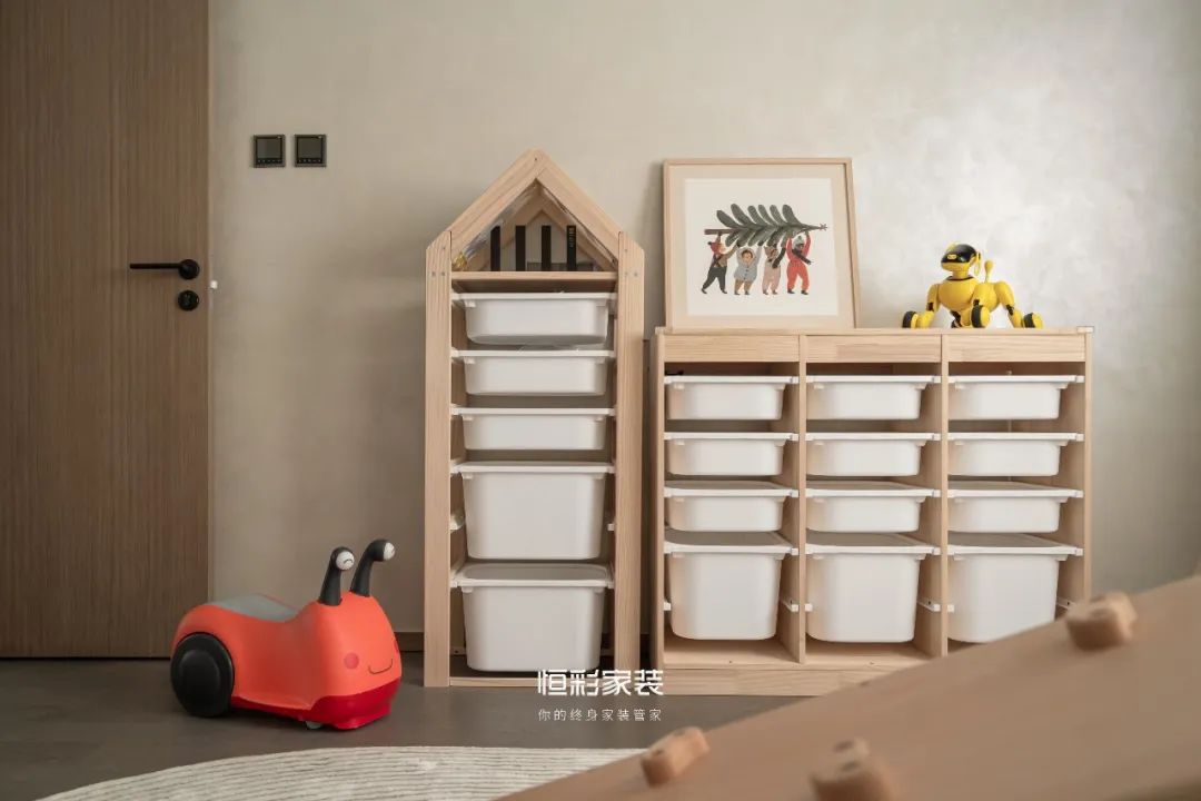 大量使用的蘑菇森林品牌的玩具收纳柜,好看实用。