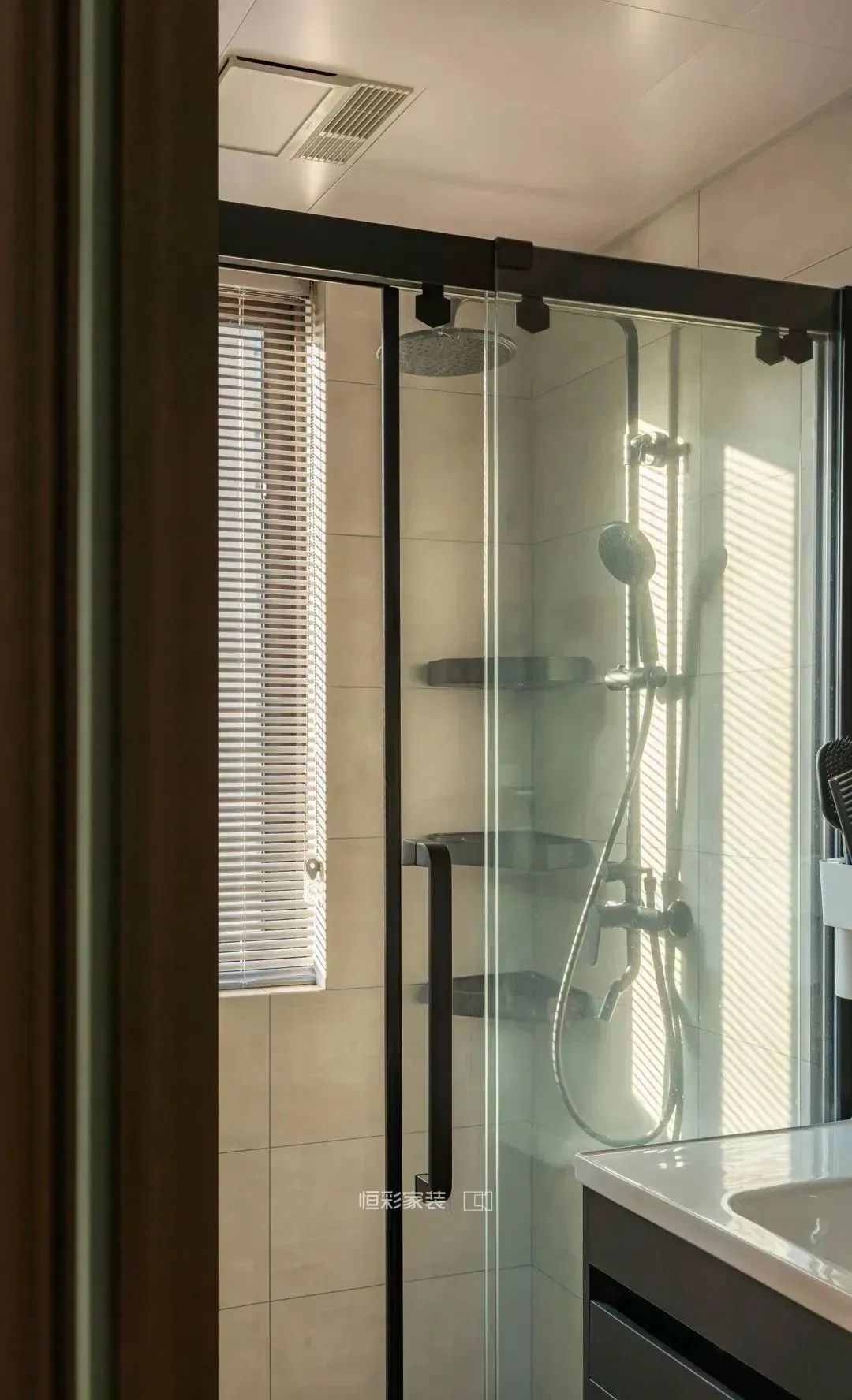 主卫从卧室衣柜位置借了一半空间用做马桶区,适当缓解了一下空间小的问题,从而实现长方形大淋浴房。