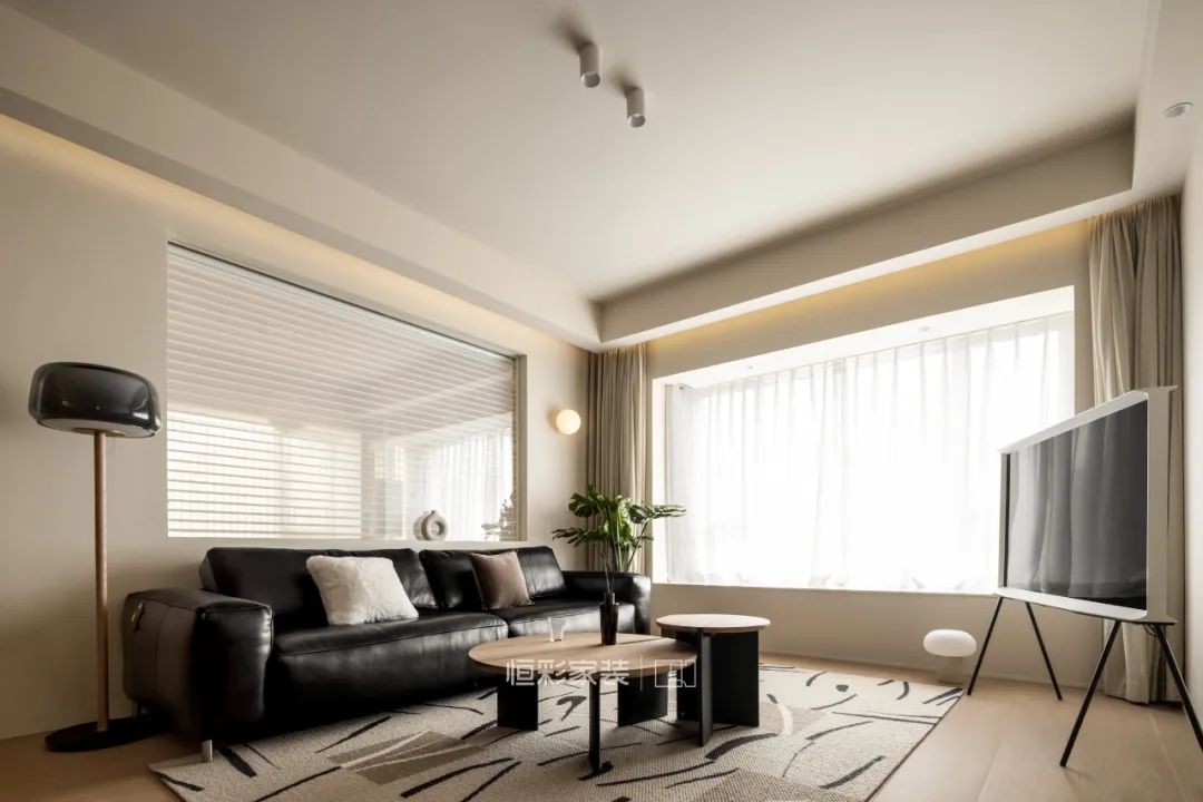 客厅电视选择了画布电视机,比起传统电视,更富有文艺小资情调。茶几的小撞色拼接细节是屋主的最爱,逛家具的时候一眼就是它了。