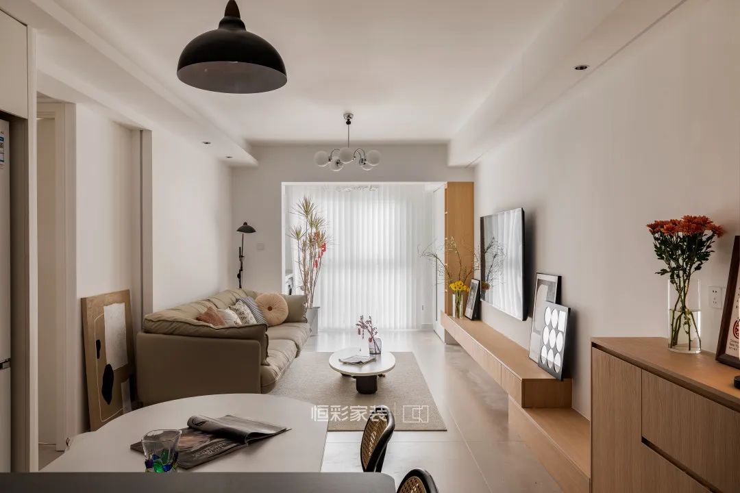 简约小圆几取代笨重的家具,从软装搭配上做减法,从而放大整体空间视觉感。