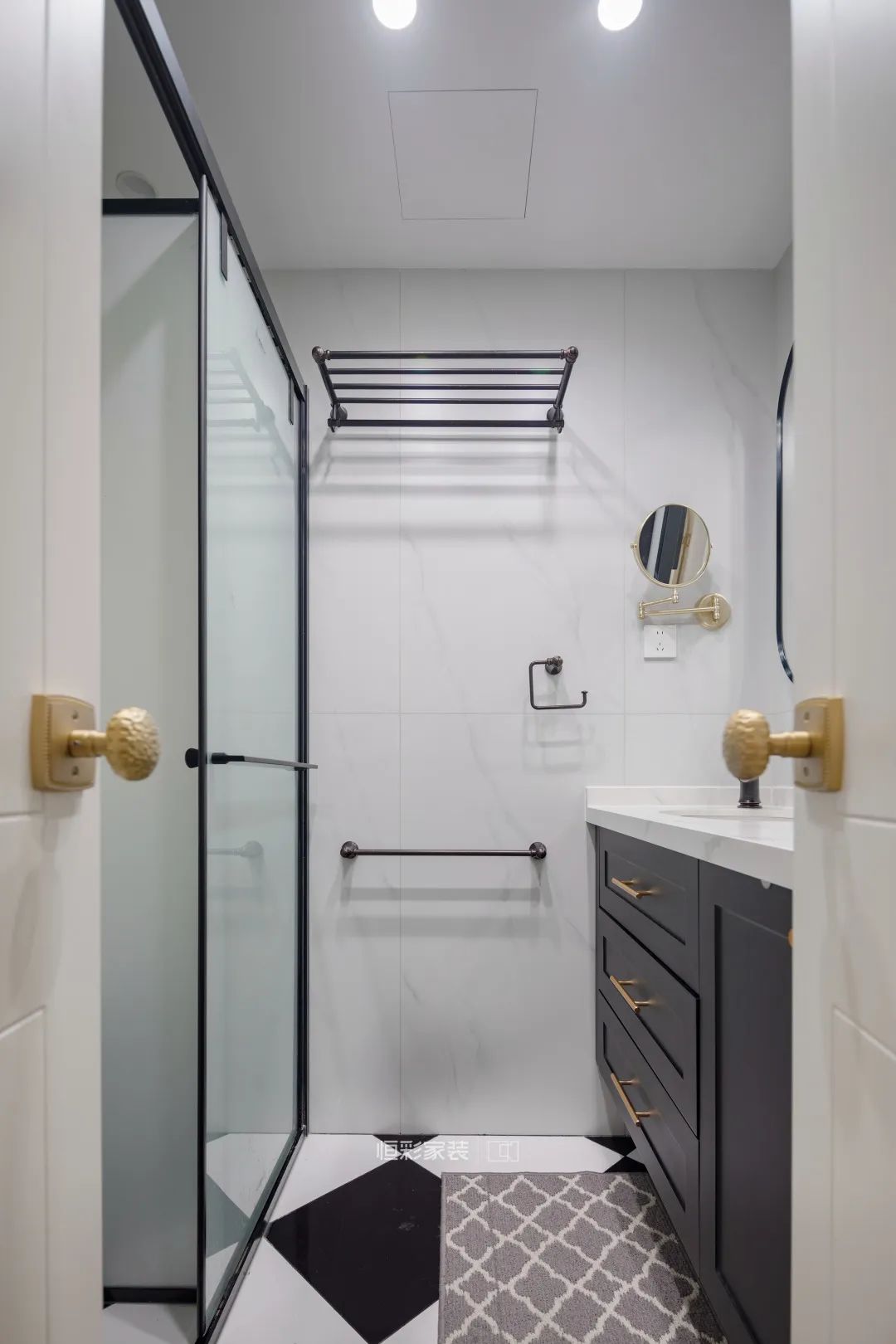 由于全屋只有一个卫生间,屋主想要充分挖掘实用性,避免日后的生活受影响。改造后的卫生间做三分离设计,如厕区和淋浴区并列分区,干区也少有地做了双台盆的设计,男女主人可以同时洗漱互不影响。