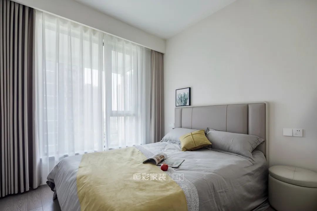 主卧阳台保留作为休闲区,整个卧室明亮宽敞,采光充足,经历了外界的喧嚣,回家只想享受这片刻宁静。
