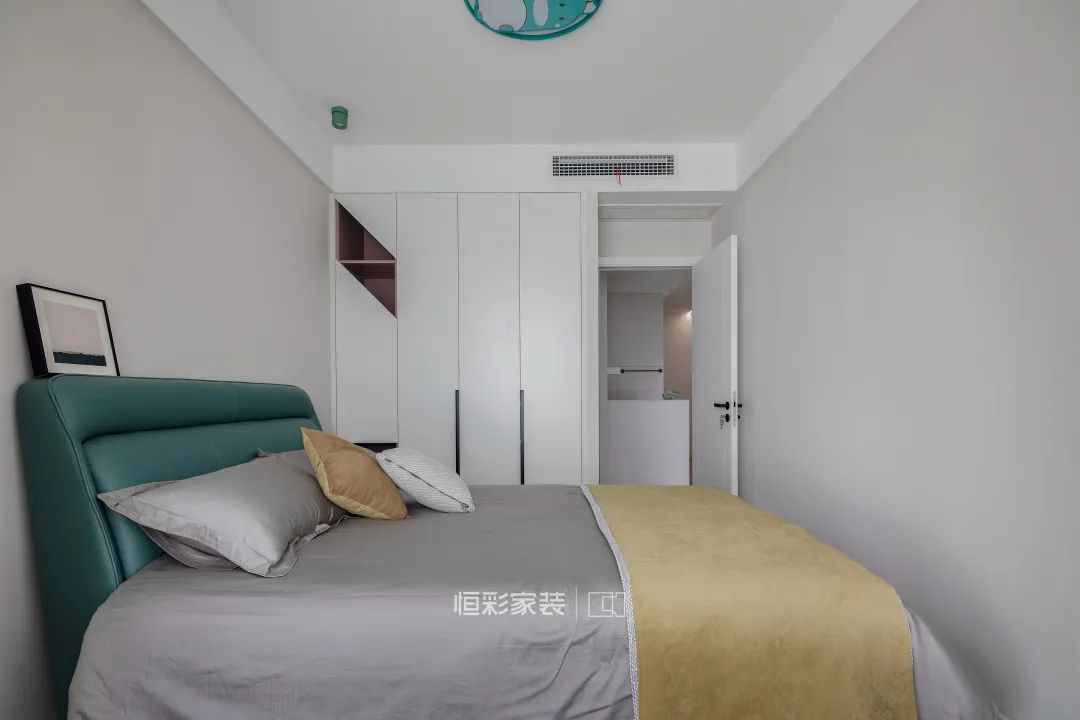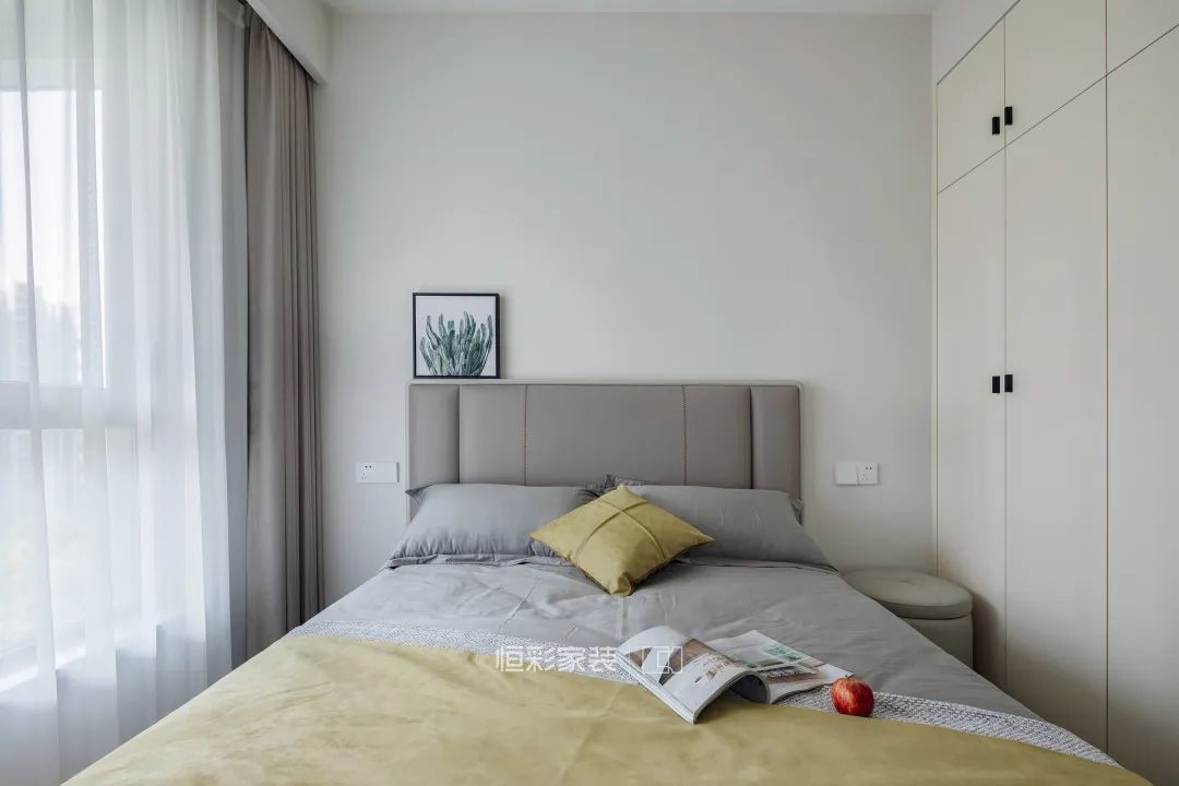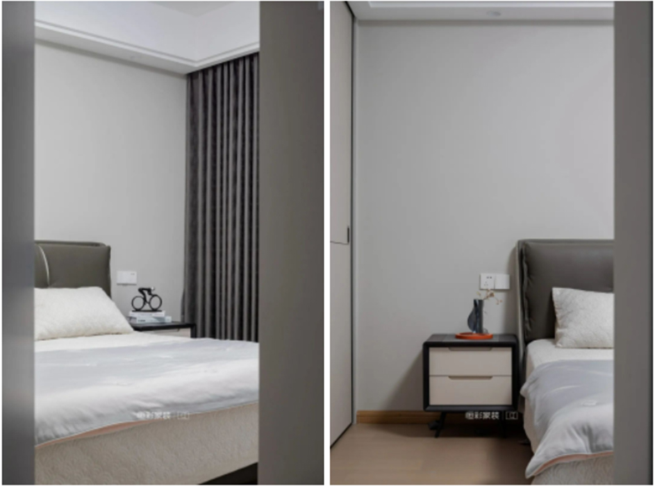 客卧作为老人房使用,布置简约实用,定制衣柜增加衣物收纳空间,老人用不惯无痕柜门,保留柜门把手。