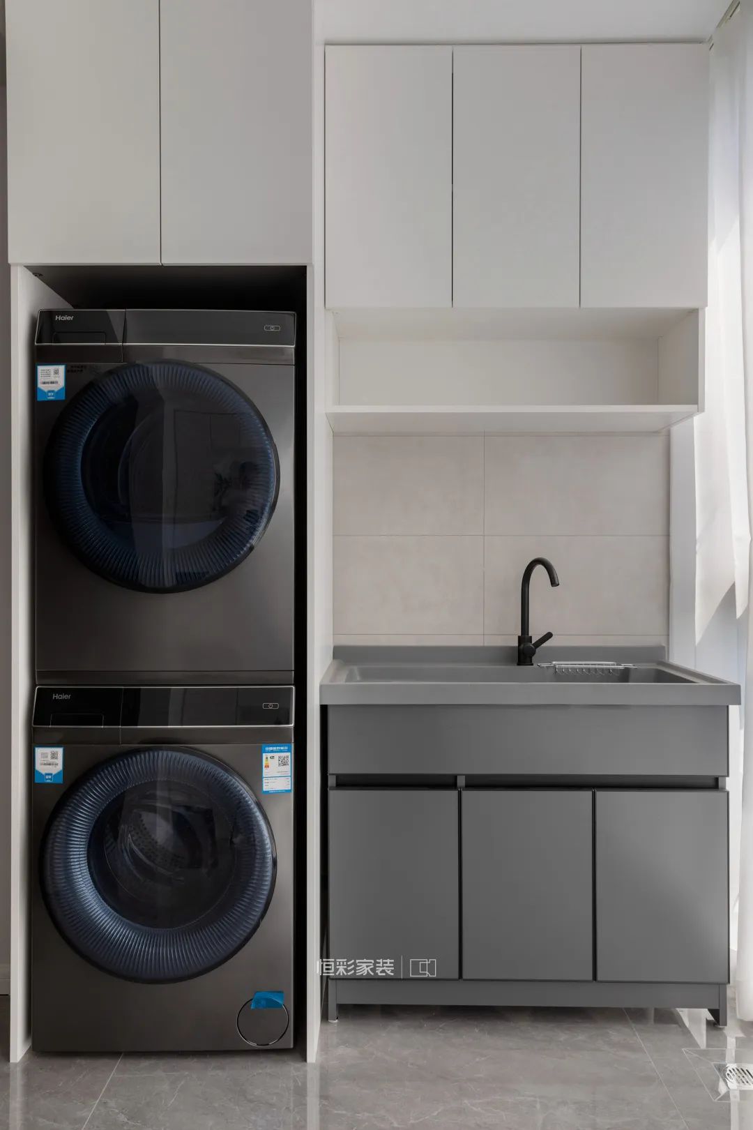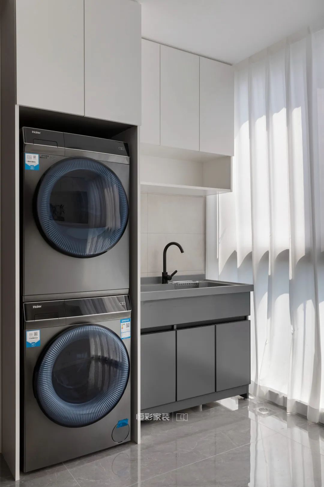 洗烘一体定制阳台柜,增加储物空间的同时,还可以将空间规划发挥到极致。