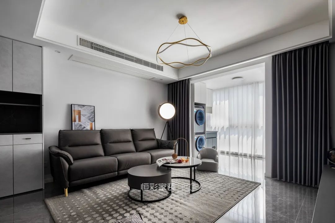 客厅保持原有格局,空间不大,索性简约大白墙搭配深色系软装,中性内敛又简约大气。
