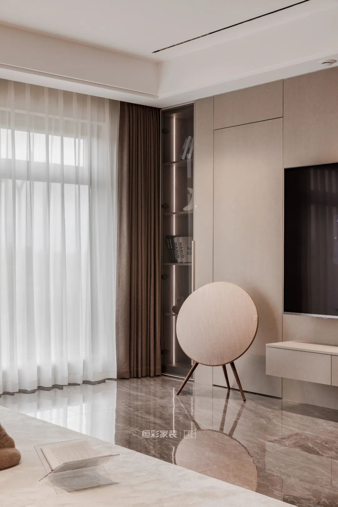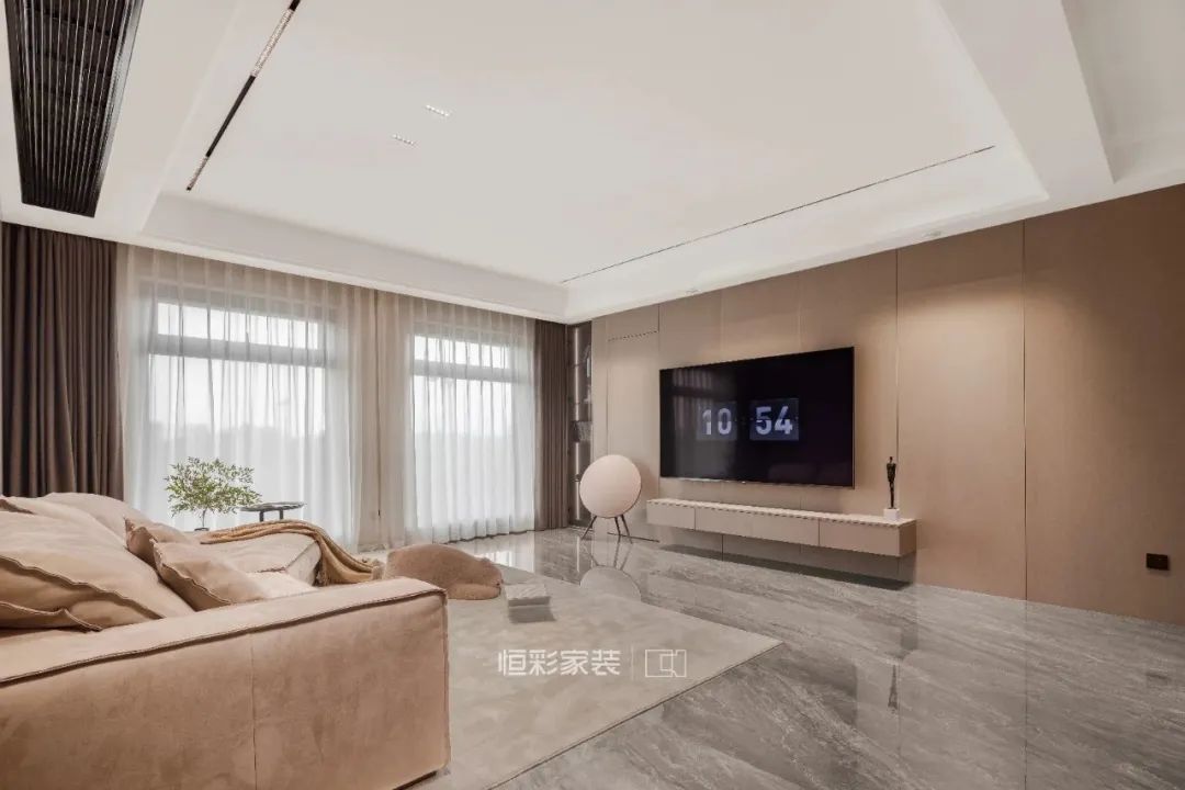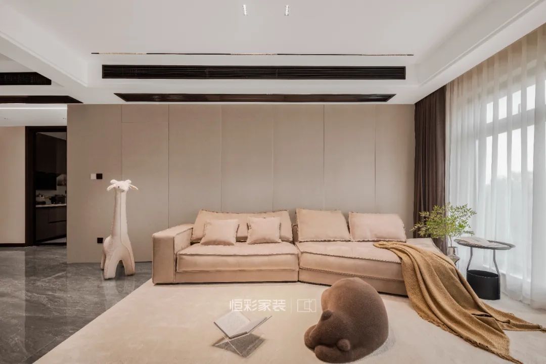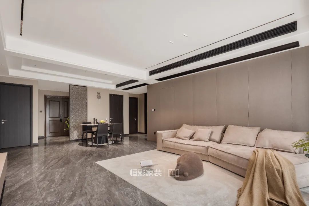 客厅顶面大面积留白,避免压抑,打造现代家居的平整、简约感。