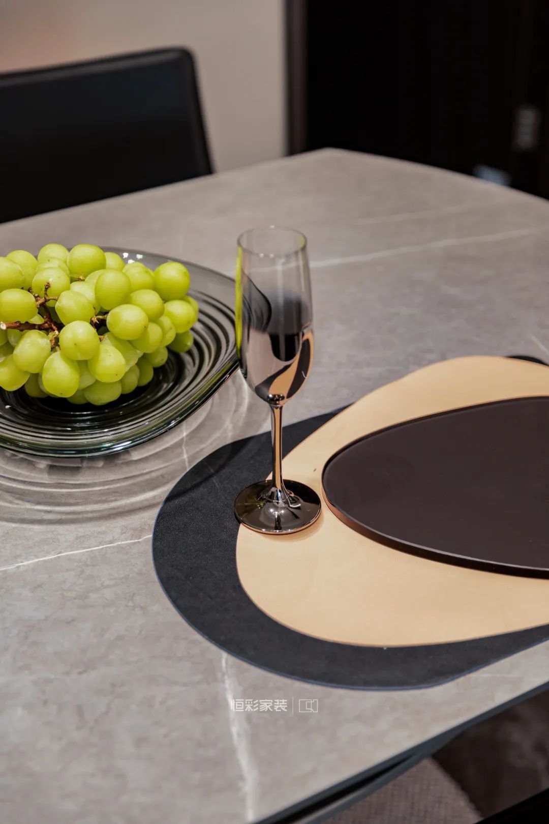 从配色上来说,餐厅呼应客厅主色调,现代风的大理石餐桌简约高级,搭配黑色餐椅舒适实用。