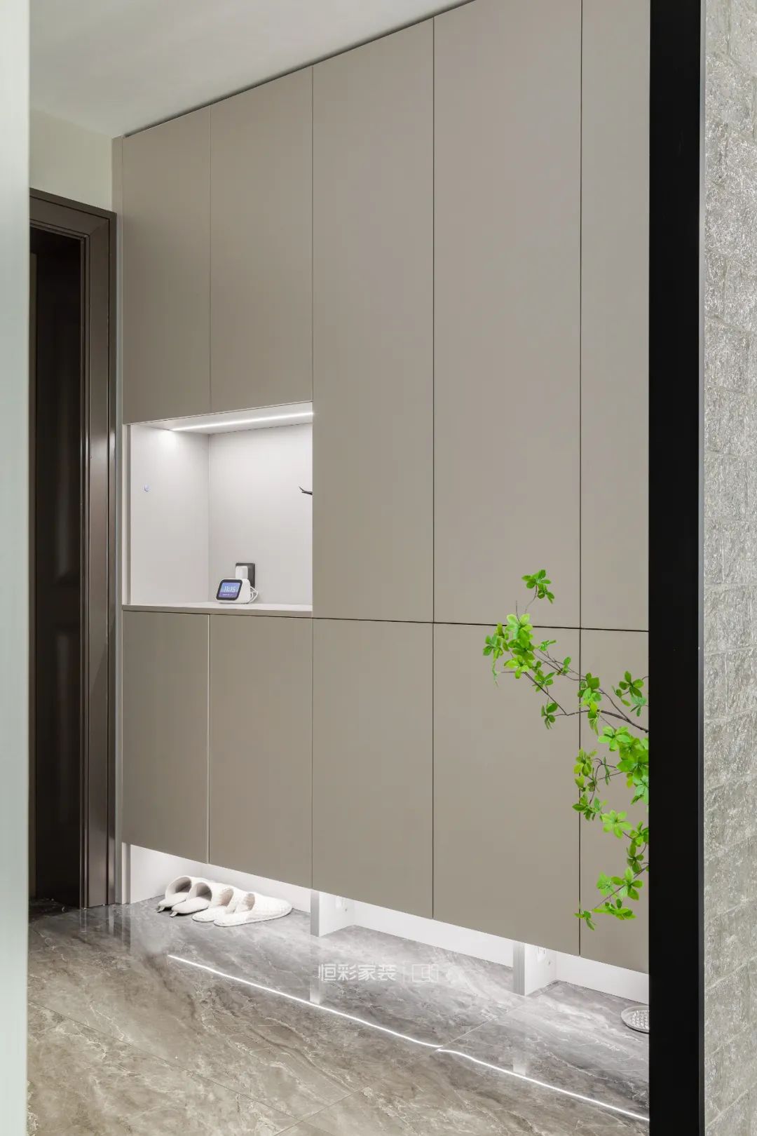 浅咖色玄关柜温润又精致,铺面而来的温馨感让人心生向往。