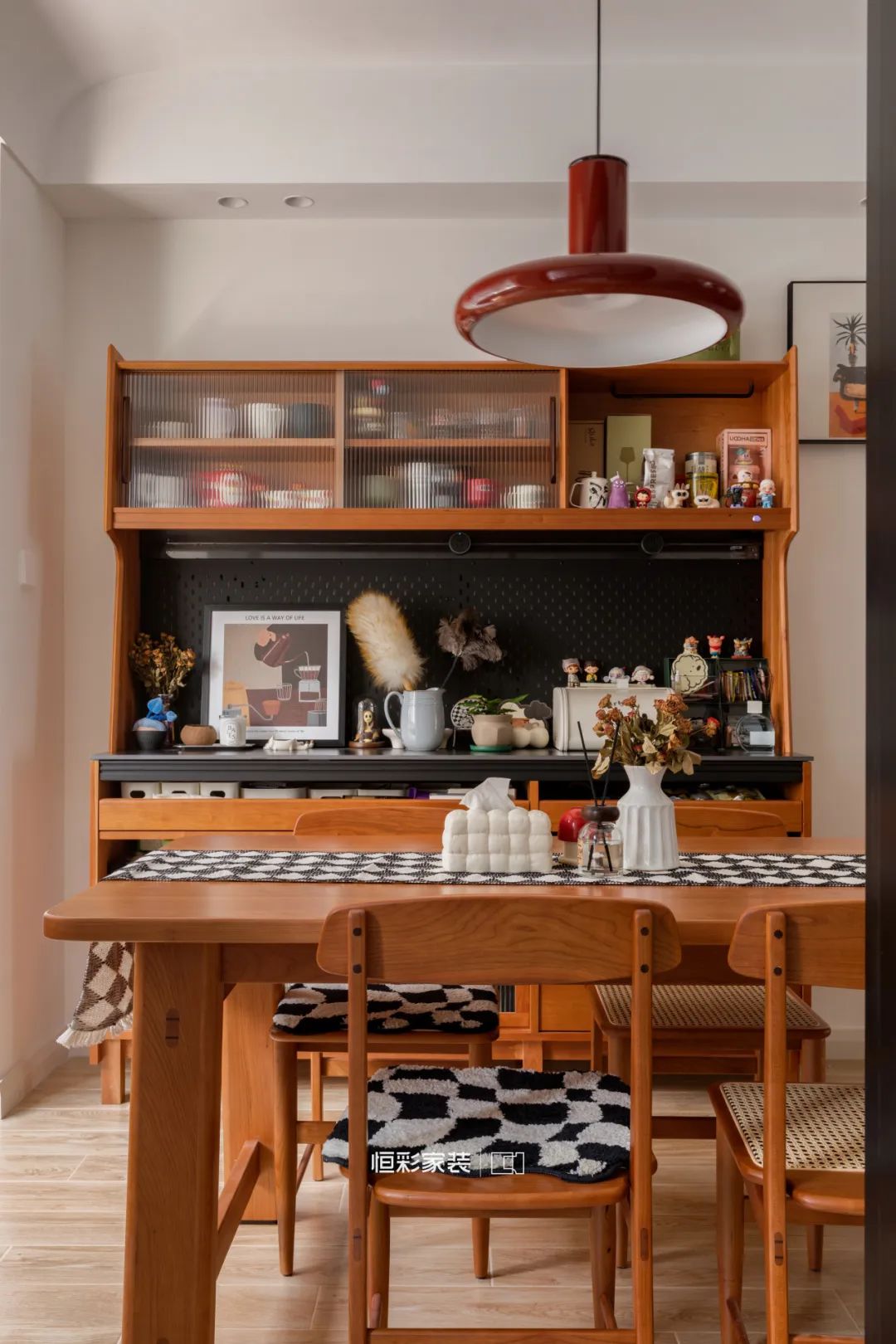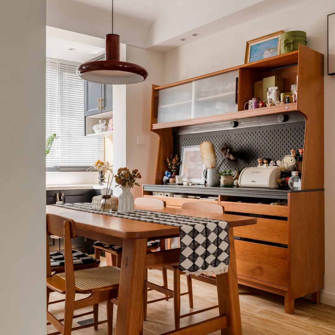 而弧形元素则是复古感的重要来源,中古调的小家具则进一步叠加了复古情调,共同勾勒出理想家的模样。