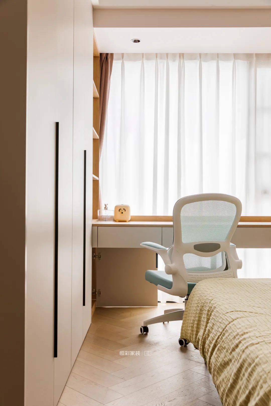 女儿房与其他空间形成一个反差,浅原木+白增添一些清新感。