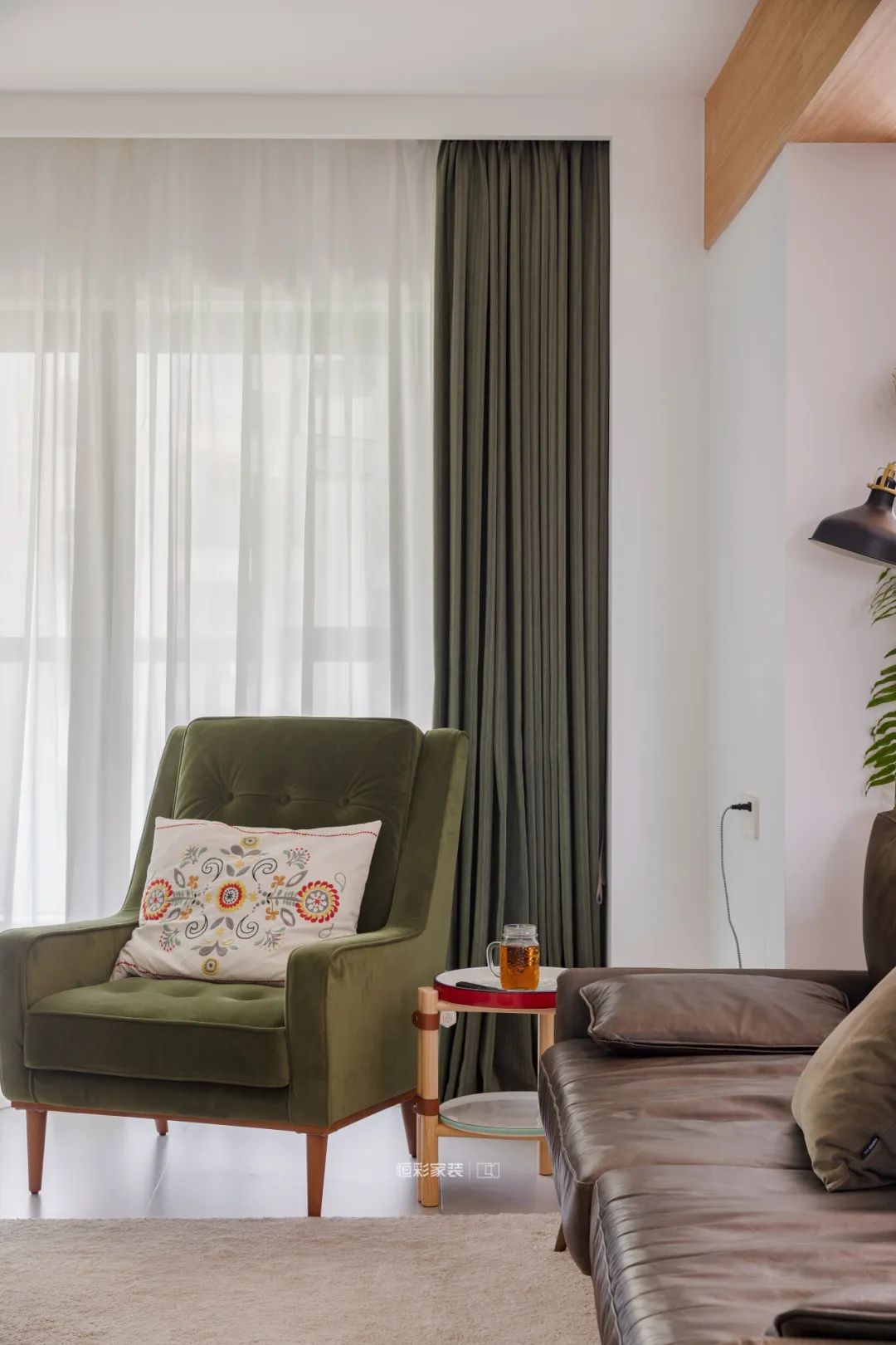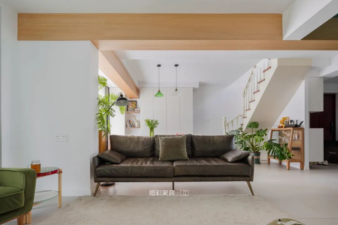 真皮度假风沙发,满满原野复古感,回家就度假。搭配墨绿色休闲单人椅,每个角落都有充足的阳光,自然光妆点出天然美,一点点还原夫妇二人梦想中的客厅。