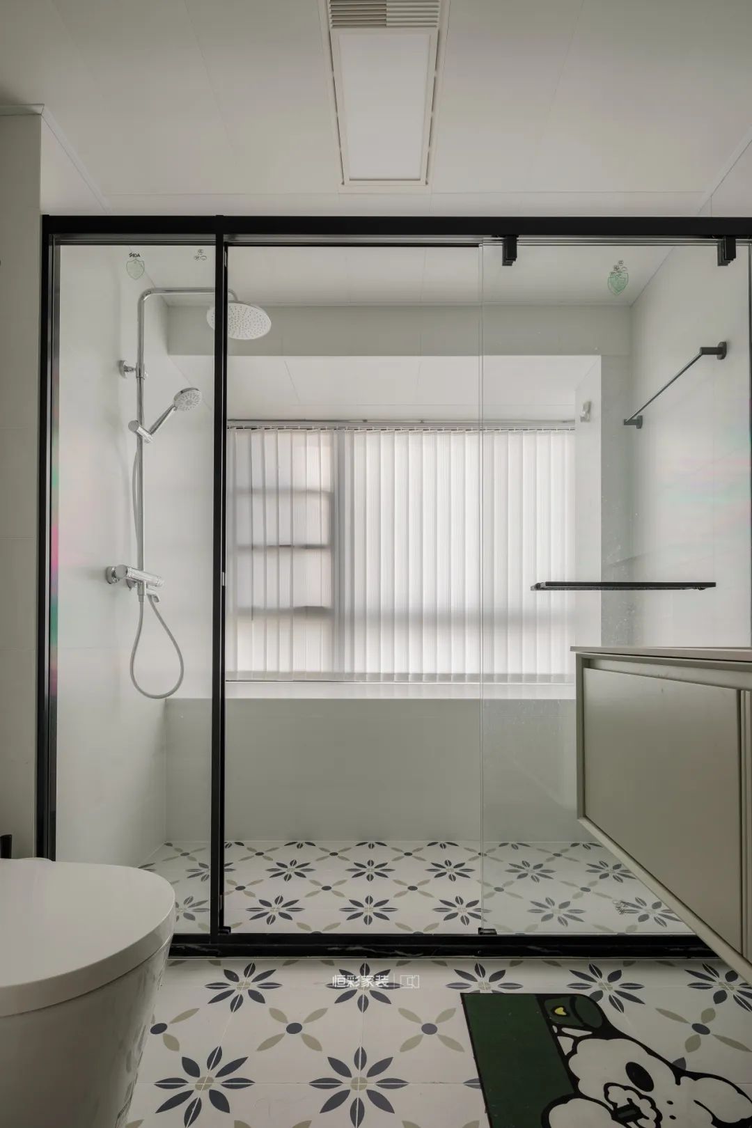 常见的灰色系瓷砖容易显得暗沉,选择浅色系花砖衬得主卫格外清新舒畅。