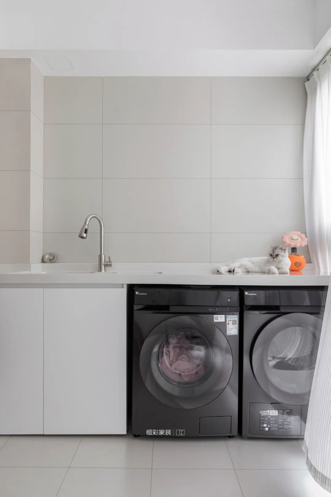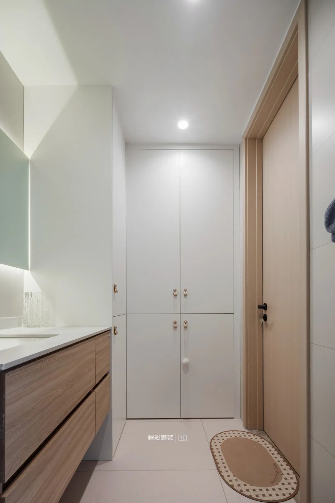 公卫干湿分离设计,走廊空间定制收纳柜提升全屋收纳空间。