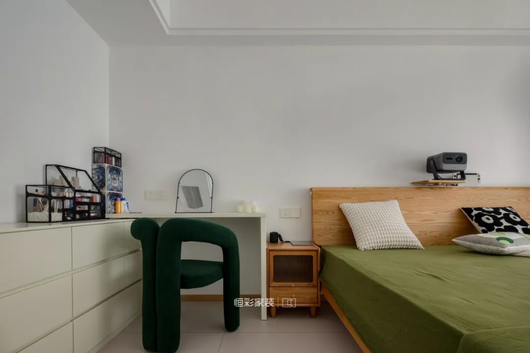 家里的软装也都是业主和设计师共同精挑细选的,每一处细节都充满了温暖和舒适感,仿佛置身于一片自然的森林之中。